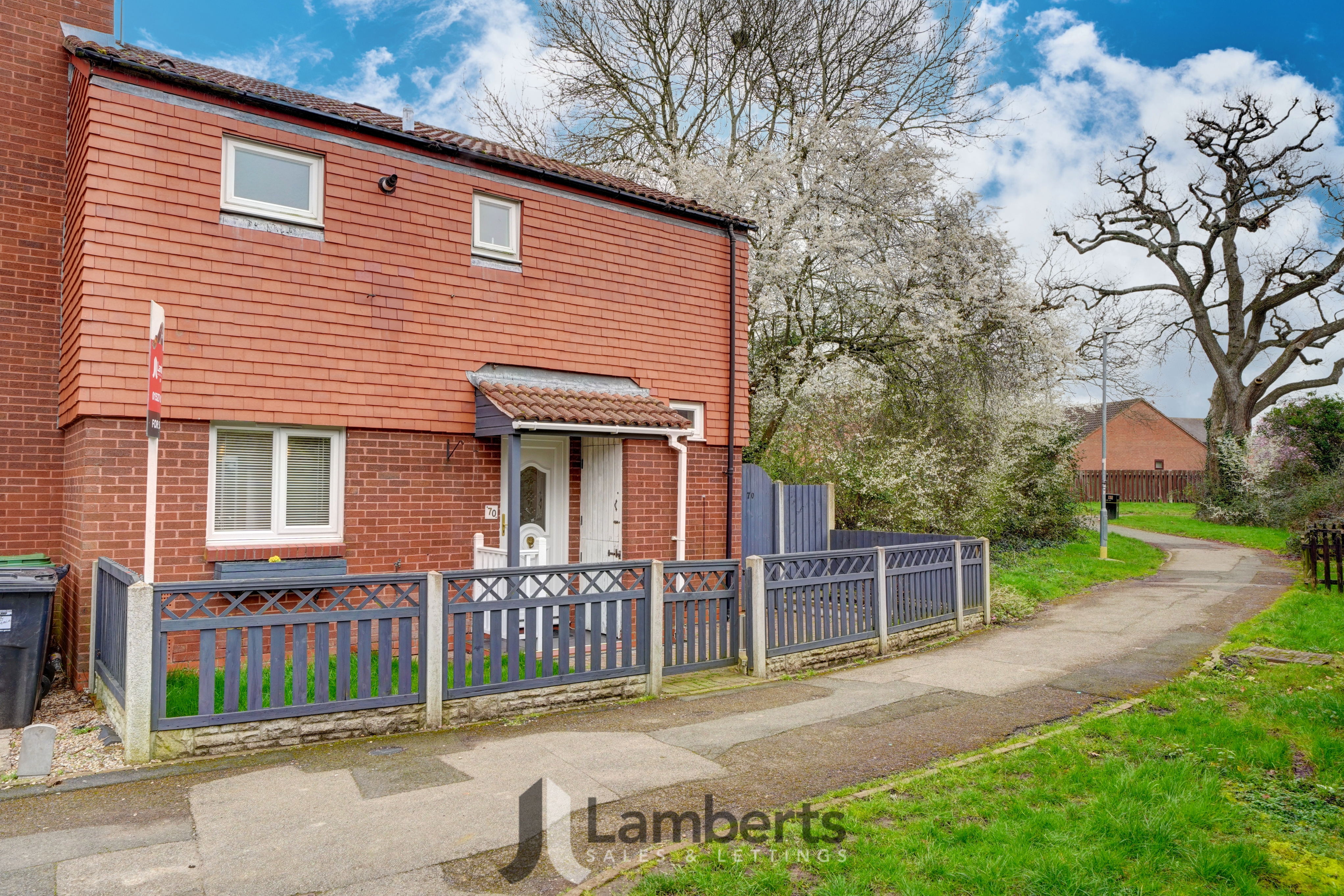No Upward Chain - Generous Plot - Ideal For First Time Buyer Or Investor - Rent Potential Of £900 Per Month. This Well Presented Two Double Bedroom End Of Terrace House offered with No Upward Chain, is ideally situated within a Quiet Cul-De-Sac Location and represents an excellent opportunity for first time buyers or investors alike. The property features a Generous Plot whilst briefly comprising: Entrance Hallway leading through to a Spacious Lounge, Modern Fitted Kitchen/Diner with ample workspace, and room for a dining table, making it a perfect setting for family meals or social gatherings along with a patio door leading to the rear garden. Upstairs, the accommodation comprises Two Spacious Double Bedrooms, Modern Bathroom and a Separate WC, providing additional convenience for busy households. Outside benefits from a Good Sized, Well Maintained Rear Garden with side access gate, along with a Gated Front Garden and Communal Parking. Viewing is highly advised. Freehold Property. Council Tax Band B. EPC Band C.