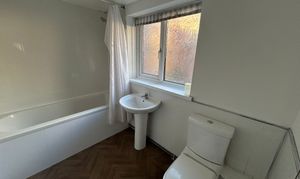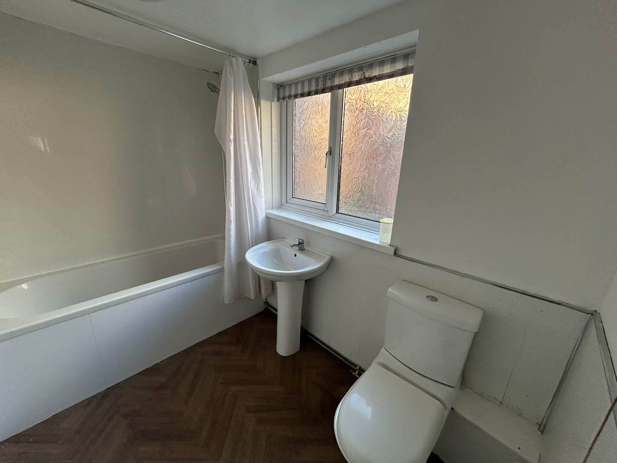 The family bathroom is fitted with a modern suite, including a bath with overhead shower, wash basin, and WC. The design is both functional and stylish, catering to the needs of a busy household.