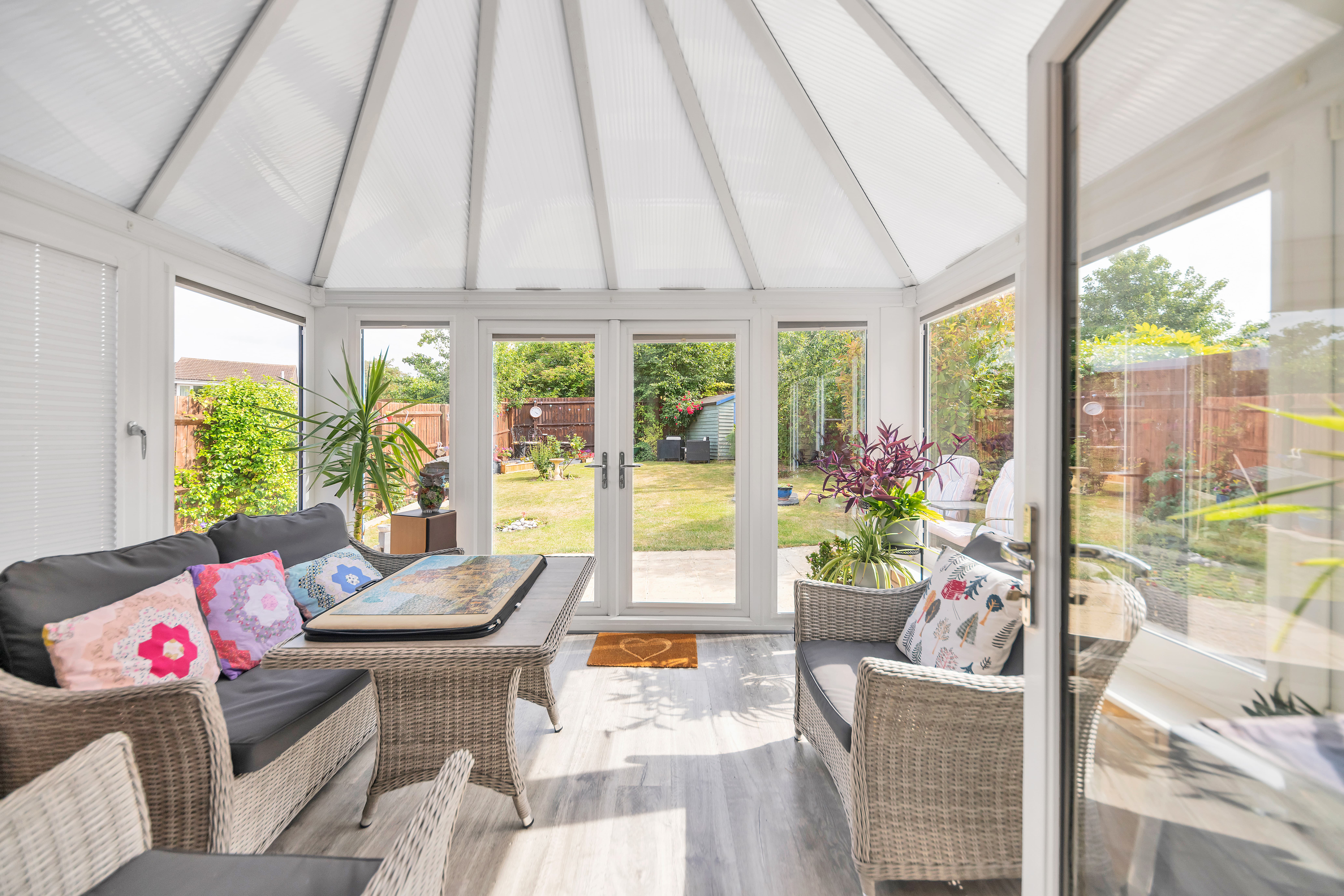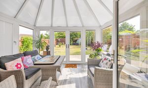 The lounge is an excellent size, with windows and a door to a garden aspect, wood flooring, pendant lighting, and lots of space for lounge and storage furniture. The conservatory offers further versatile reception space, enjoying lovely views of the garden, wood flooring, and lots of room for furniture.