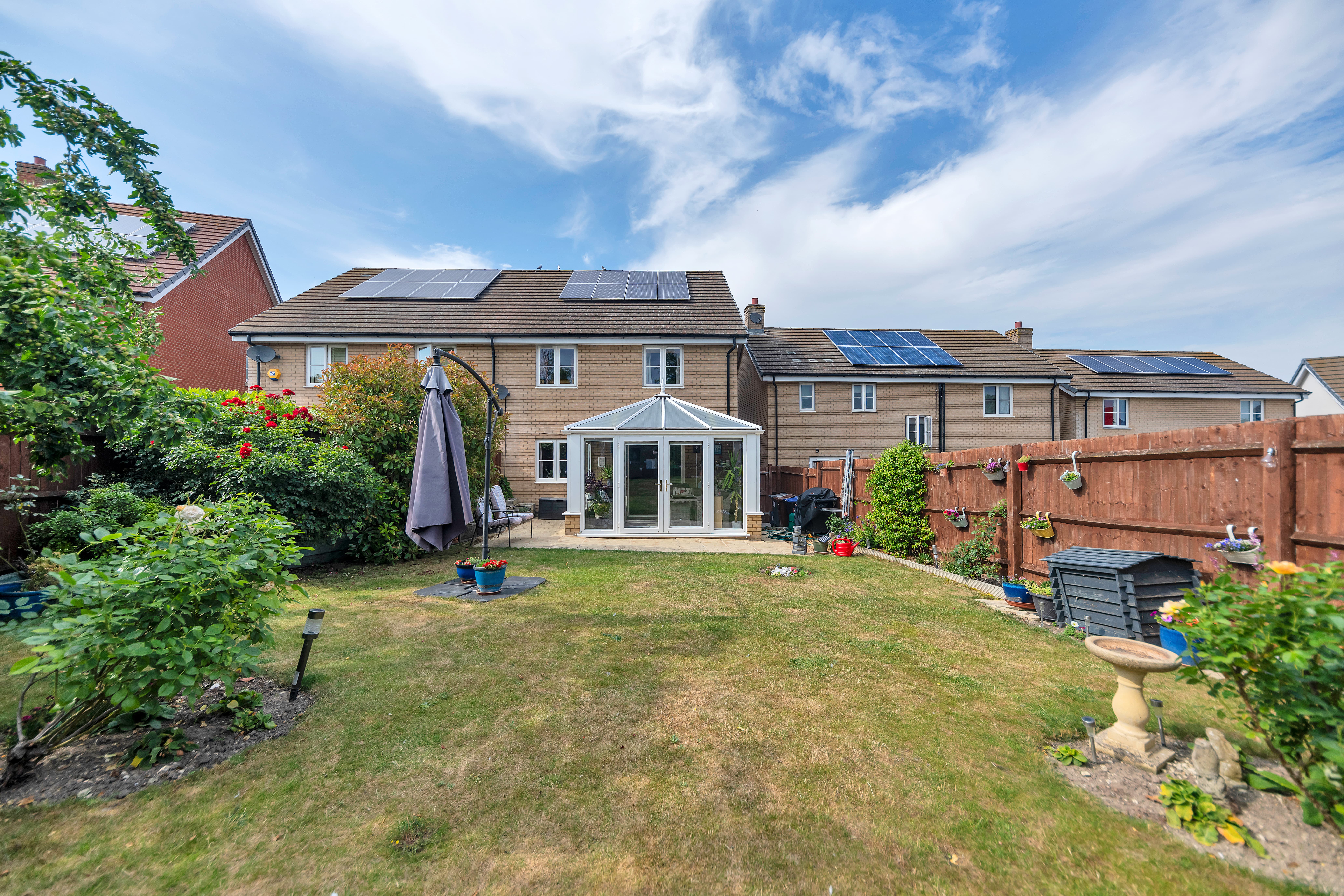 Outside, to the rear, the garden is a very nice size, fully enclosed by fencing, and offering a lovely sunny spot to sit and relax after a busy day. It is laid mainly to lawn, with paved patio and decking areas, providing ample space for garden furniture, enjoying meals al fresco and entertaining guests. There are stunning borders and beds, full of colourful plants, flowers and shrubs, plenty of space for potted plants, access to a shed, and scope for future owners to put their own touches on things.