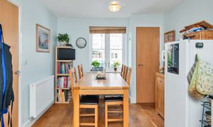 This well-presented property enjoys good kerb appeal, with a modern, tidy frontage, a front garden with pretty plants and shrubs, and access to allocated parking with visitor bays nearby. Upon stepping inside, the entrance hallway is wide and welcoming, with wood flooring, pendant lighting, integrated storage, stairs to the first floor, and doors through to the downstairs living accommodation, including a cloakroom WC.