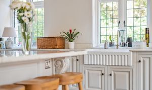 Upon entering, you are greeted by a large entrance hall complete with storage and a cloakroom. The double-aspect kitchen/dining room is a standout feature, with bespoke Clive Christian cabinetry providing plenty of storage, quartz work surfaces, and an island unit with breakfast bar, whilst two magnificent chandeliers add to the elegance of this room. The pale blue Lacanche range cooker and integrated appliances add to the kitchen's appeal and with space for a large dining table, this is a fabulous room for entertaining friends and family. Double doors lead into the dual-aspect drawing room, which benefits from abundant natural light and garden views. The room features a window seat overlooking the gardens to the side, doors to the garden, and for the cooler months, a woodburner for added cosiness. A further sitting room, adding to the versatility of the living space, has arched doors to the garden and a feature fireplace as a focal point.