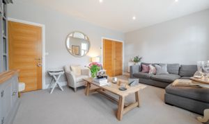 Stunning, light-filled open plan shaker style kitchen with Neptune fitted corner bench. Bay window to the rear with doors leading to the garden. Range cooker with gas hob, microwave, fridge, freezer and dishwasher. Island with breakfast bar and quartz worktops. Tiled floor with underfloor heating
