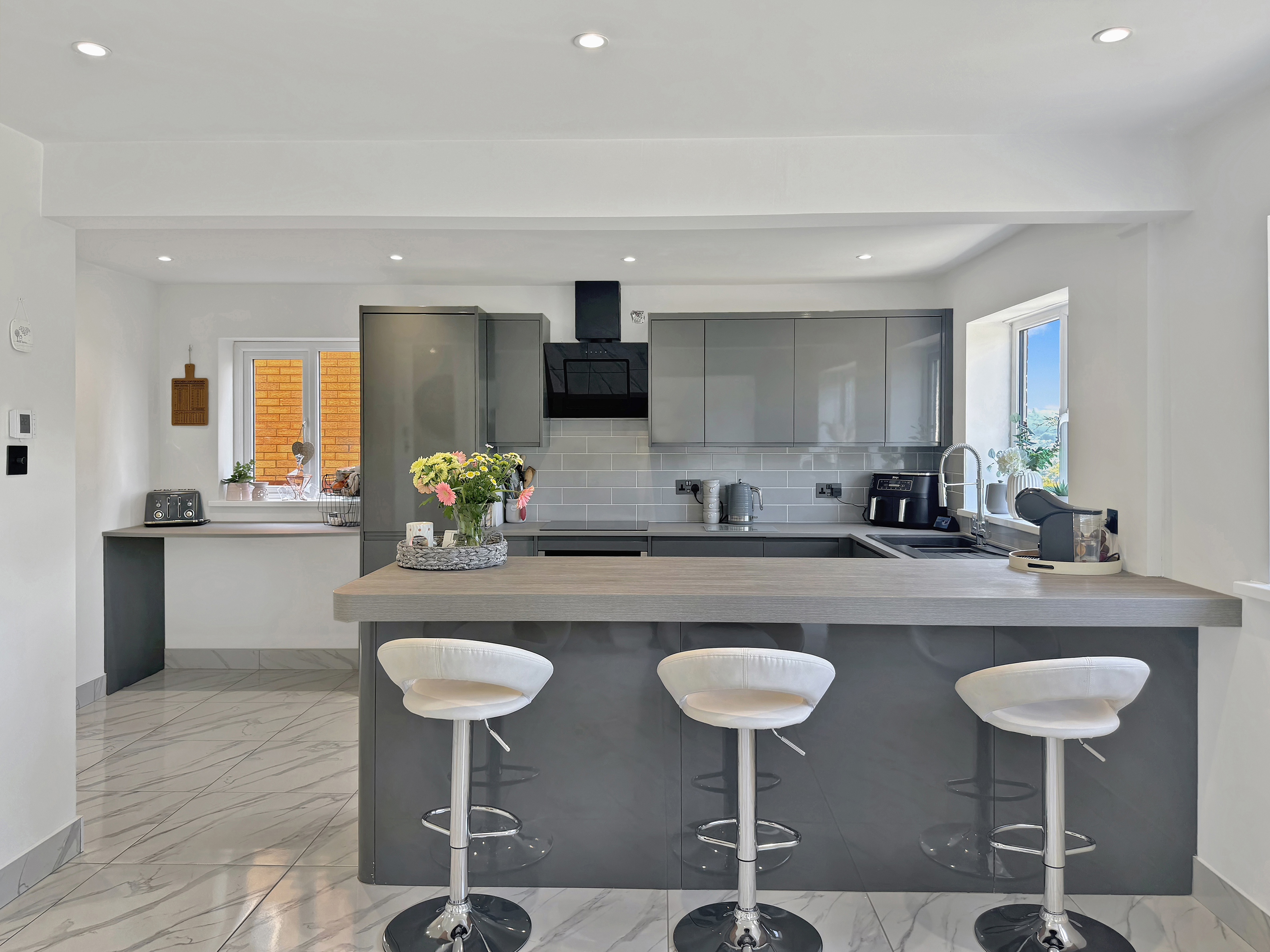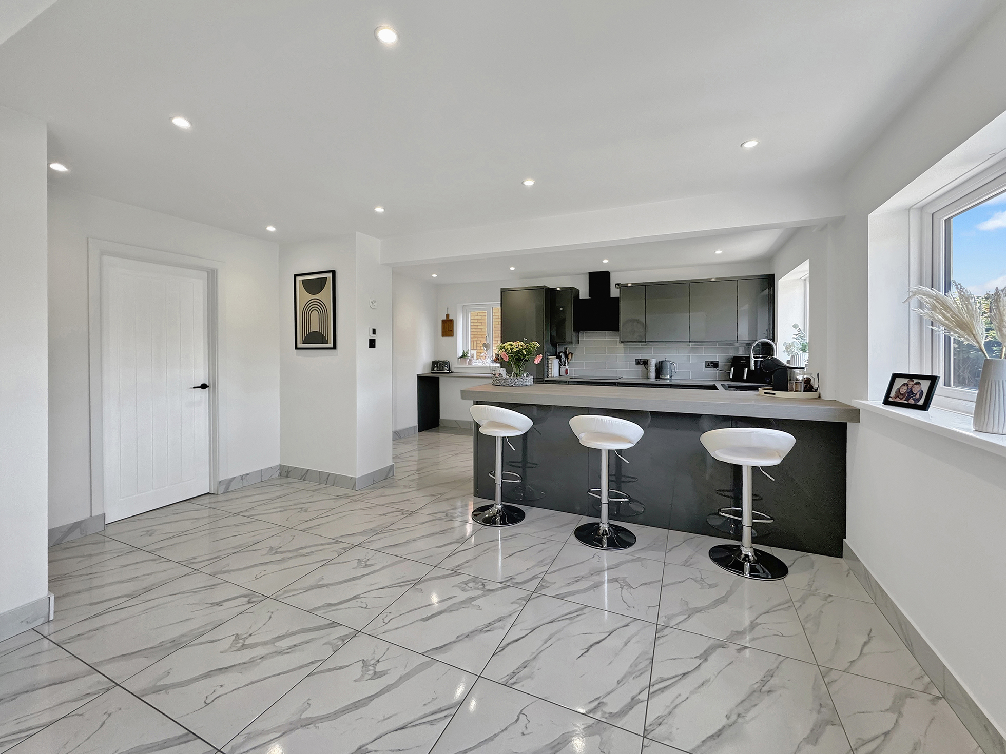 The open-plan layout of the lounge, diner and kitchen creates a seamless flow throughout the ground floor, perfect for both relaxing evenings in or entertaining guests. The sleek and contemporary design is complemented by the underfloor heating downstairs, ensuring comfort and warmth during the colder months.