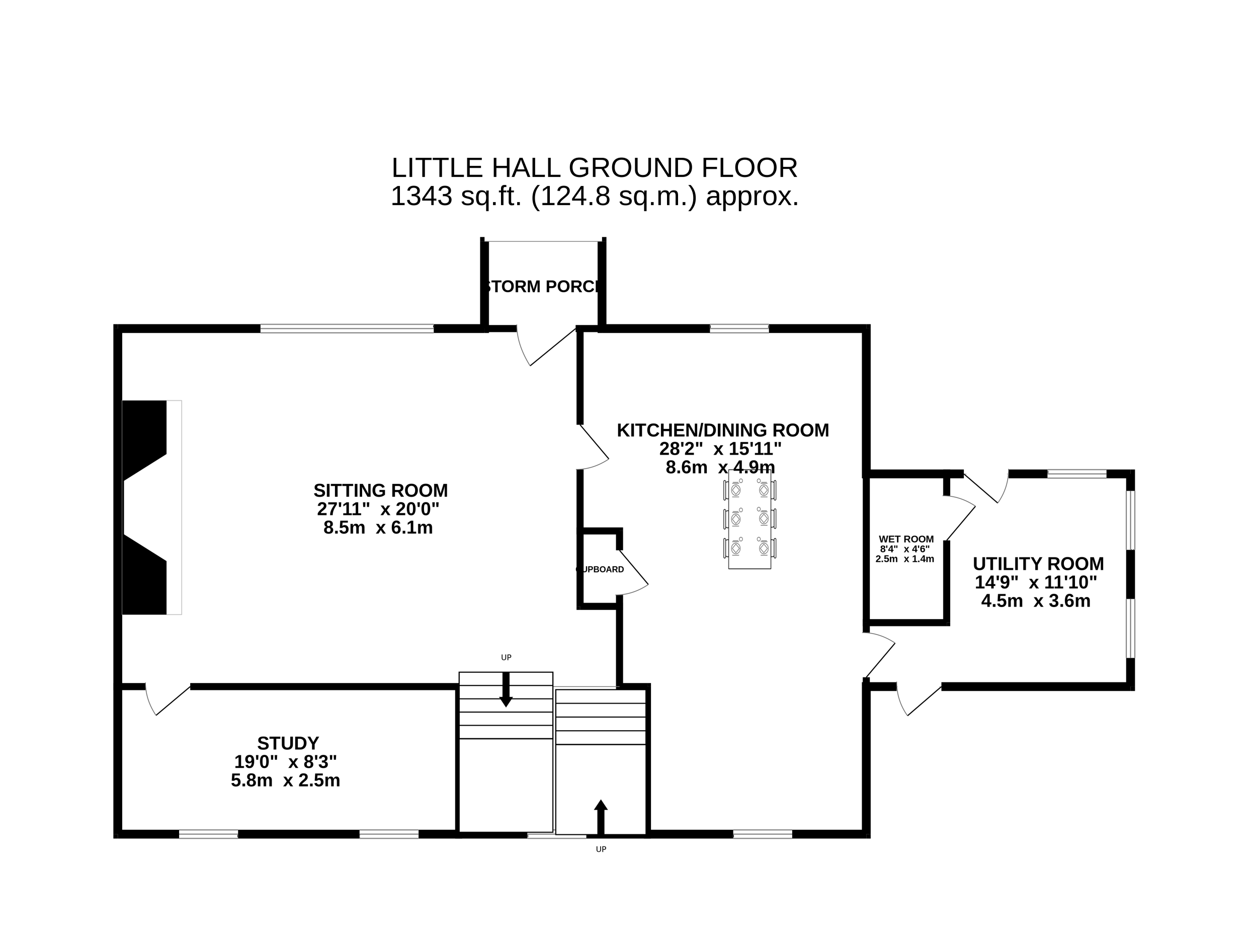 A large space ideal for a study area (Little Hall benefits from Fibre broadband 500Mbps download and 73Mpbs upload speeds) or reading area, with windows framing the magnificent countryside views.