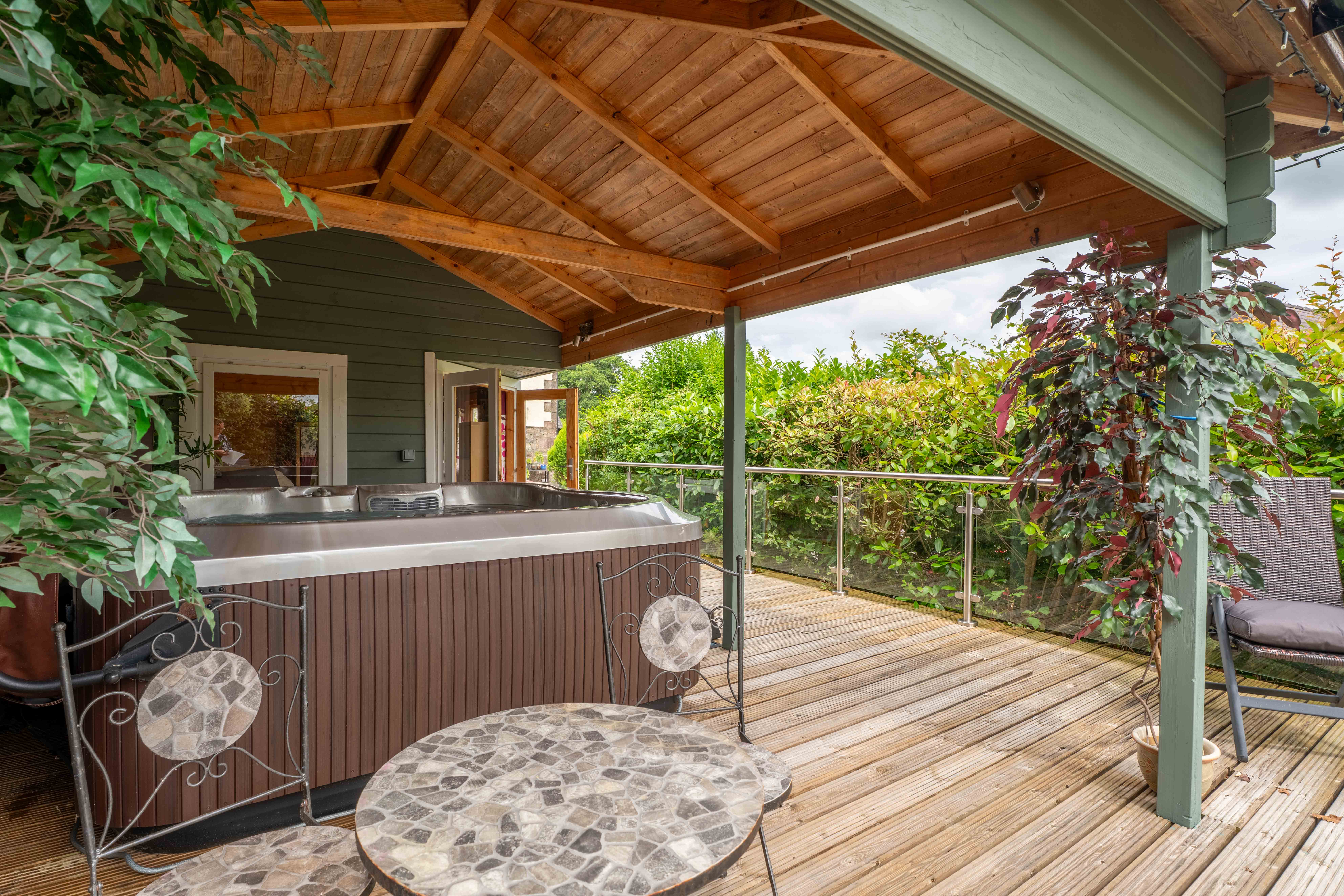 Closer to the main house, the well-stocked, mature, ‘secret garden’ hosts a wonderful fully covered ‘jacuzzi’ hot tub with summerhouse offering a changing area, lawn and seating area, allowing quiet reflection whilst immersing yourself in the natural beauty around you.