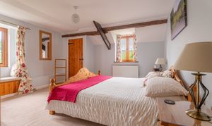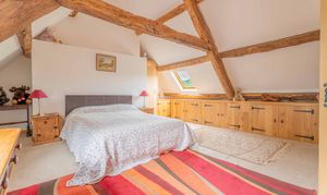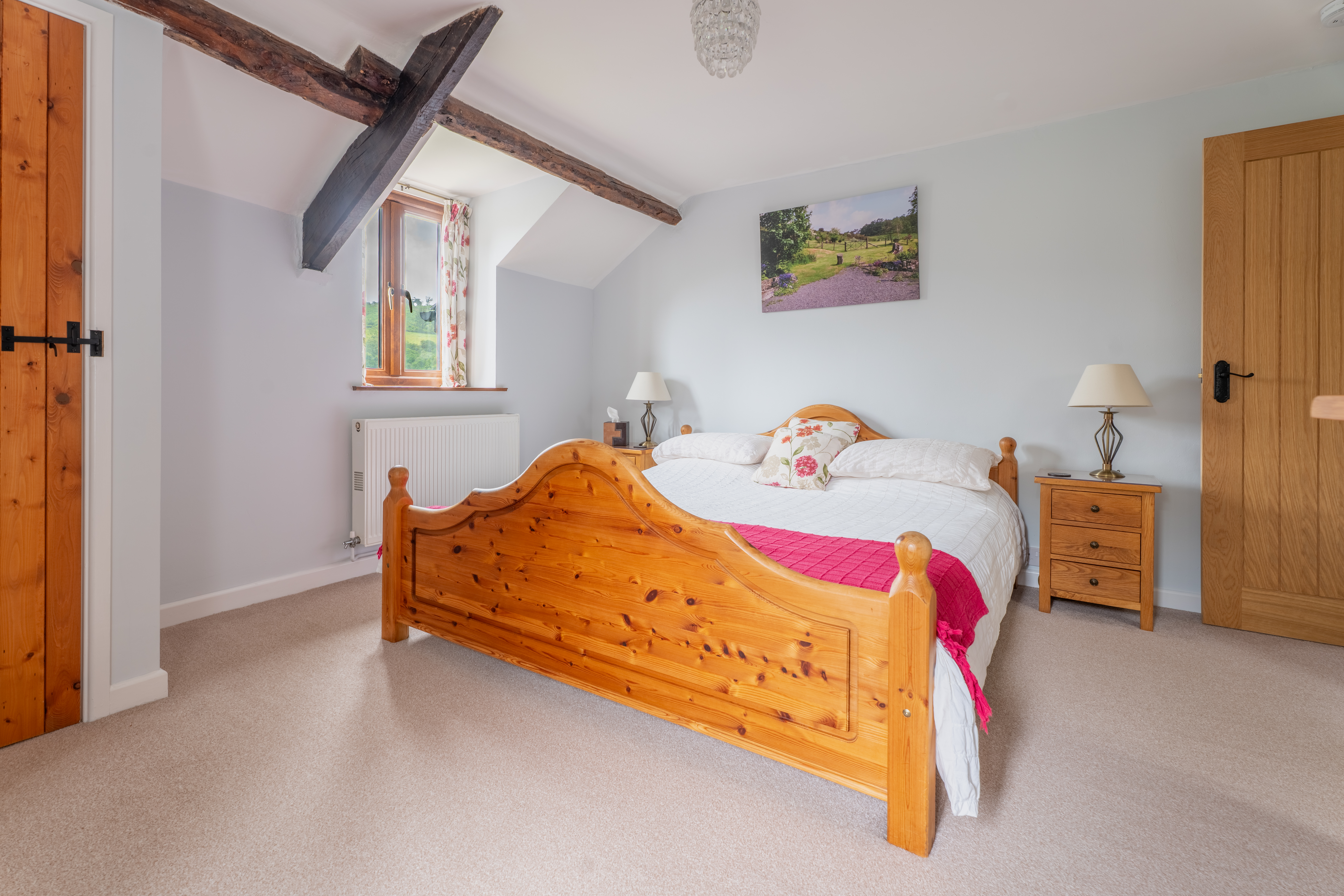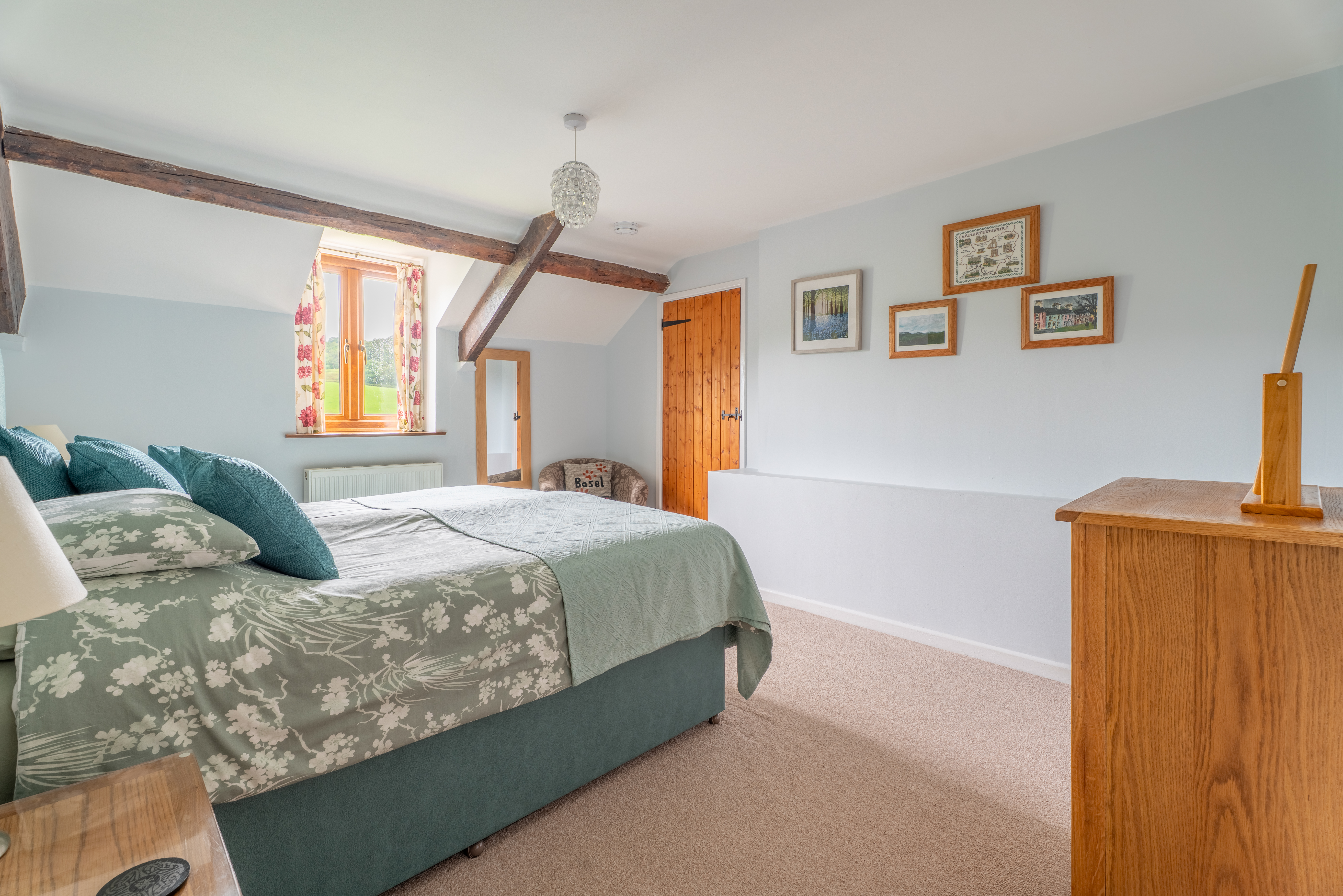 Currently housing super king size bed, large built in wardrobe, exposed beams, window offering amazing views across the valley.