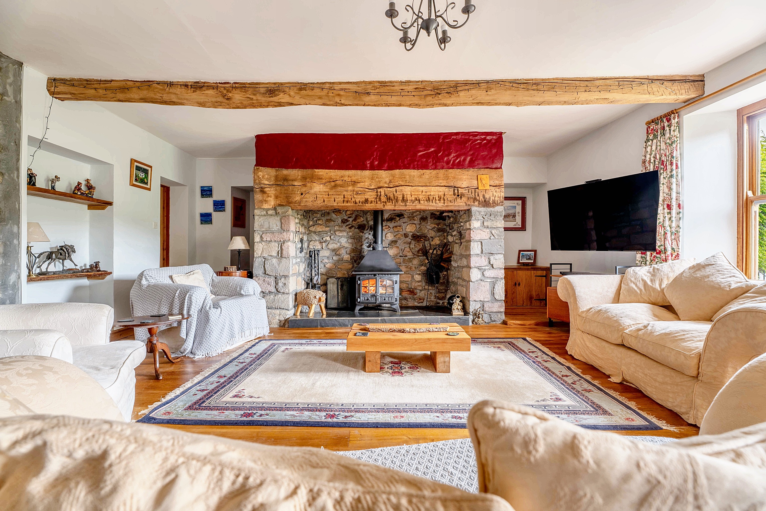 Having period features offering a ‘nod’ to the varied history of this homely dwelling. Large picture window with spacious seating from which you can take in the beautiful views and watch the wildlife close up, an original stone inglenook fireplace with wood burning stove, exposed beams to ceiling and Welsh slate flooring.