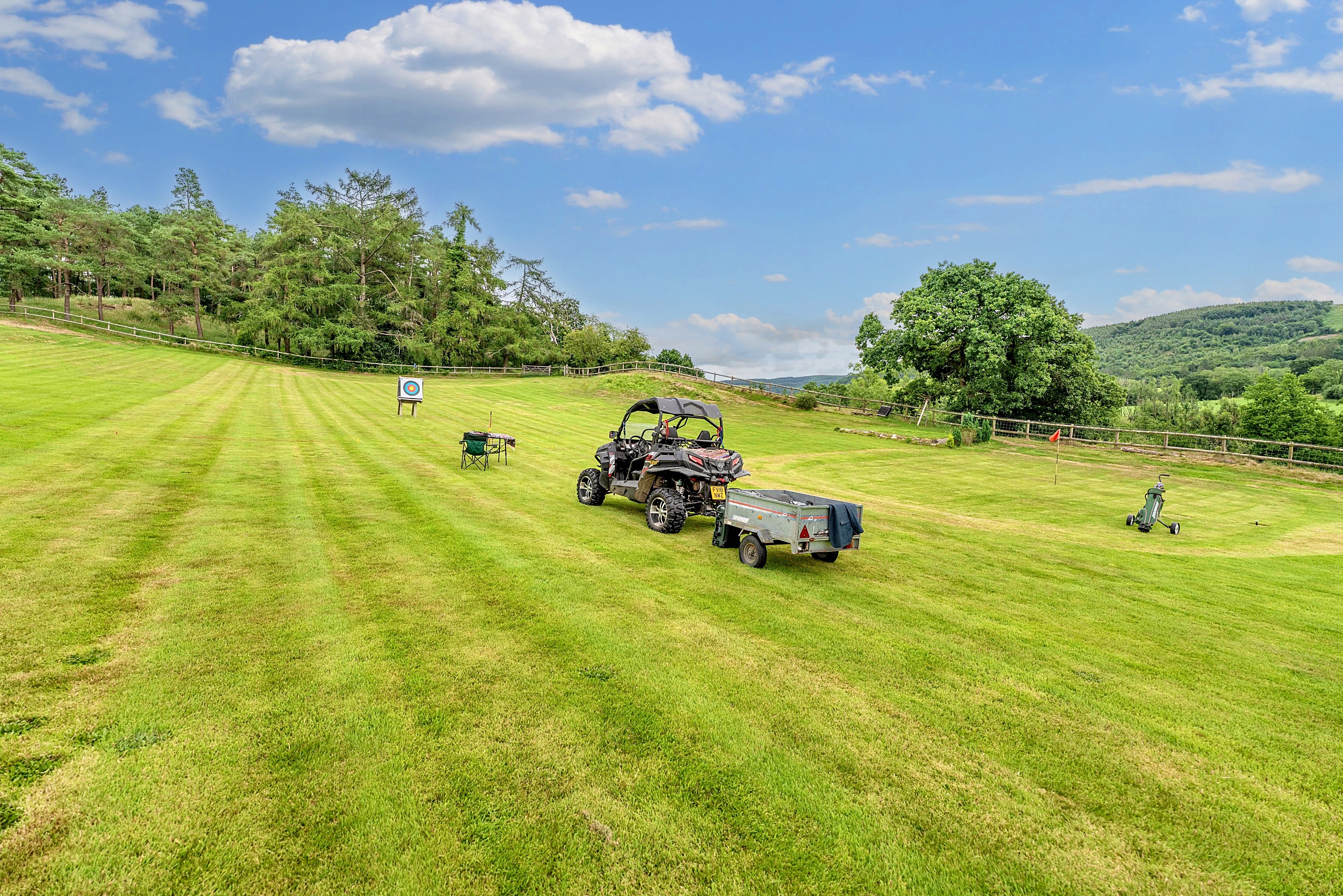 - Offering ample space for the shooting range, 4 hole, 'agricultural' pitch & putt, archery and croquet on the lawn, along with large three car garage currently utilised as a games room.