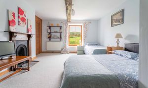 Housing a super king size bed. Large built in wardrobe. Dual aspect widows, exposed beams, window seat. Amazing views across the valley.