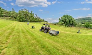 The land is a mix of beautifully landscaped gardens, terraces (one with fire-pit), secret garden with covered hot tub and summer house, woodland and open fields. The enclosed garden runs seamlessly into one field, which has been developed as a four-hole agricultural pitch and putt course with a shooting range, which in turn runs up to an enclosed woodland where you can find many new trees and shrubs with a private cabin offering sanctuary and wonderful views.