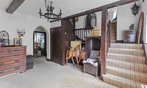 Upon approach to the property, down a peaceful road you will notice the imposing yet attractive frontage. There are 2 separate driveways, for the main home and the annexe. Heading into the main residence, there is a superbly proportioned entrance hall, with ample storage cupboards, space for shoes and coats, access to the cloakroom, living/dining space and stairs to first floor.