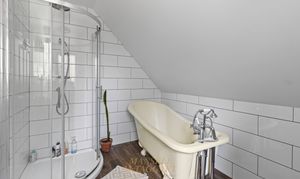 The Annexe is set across two storeys, downstairs there is an open plan living space and separate kitchen, with the top floor benefitting from a sizable bedroom and bathroom with potential income from renting.