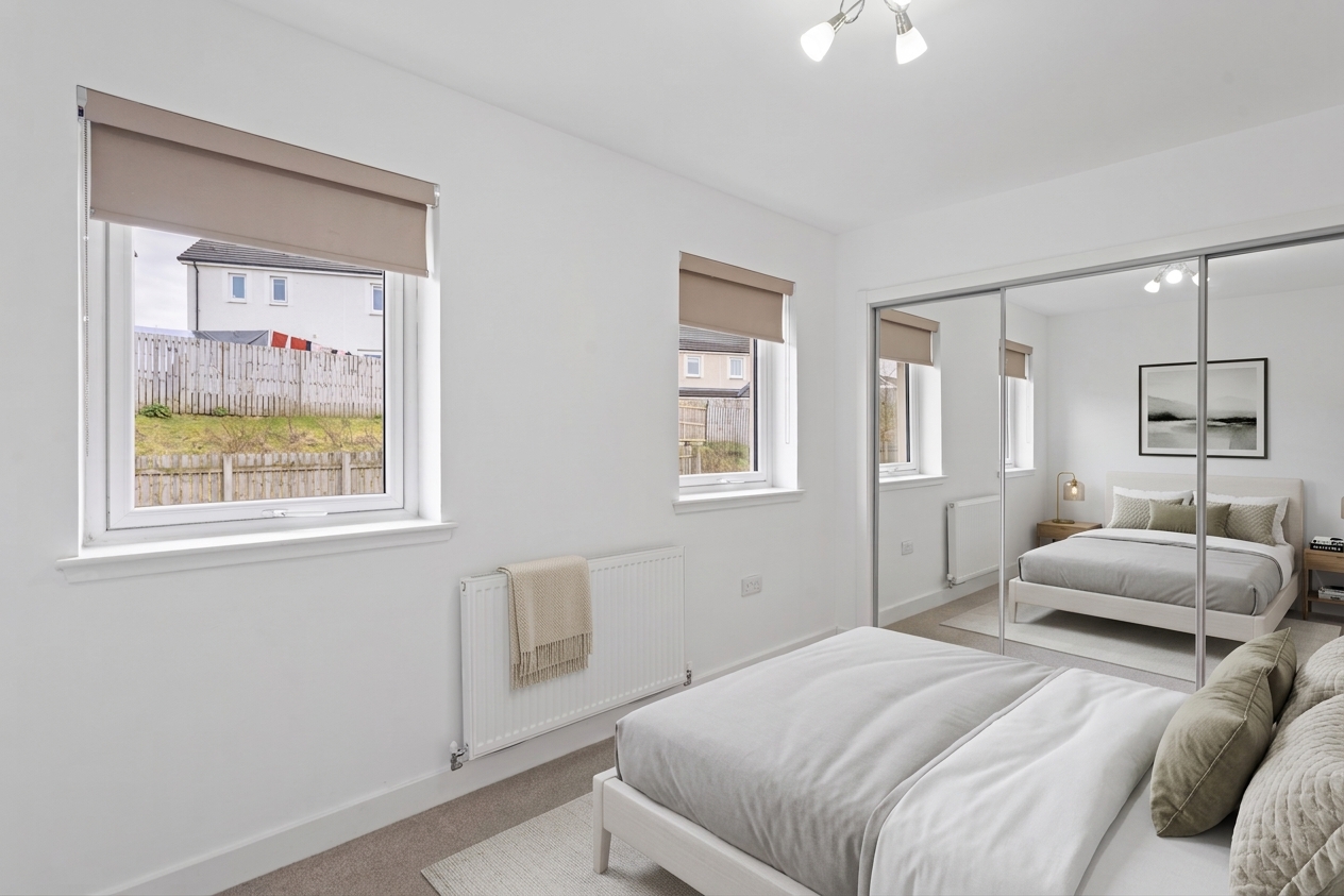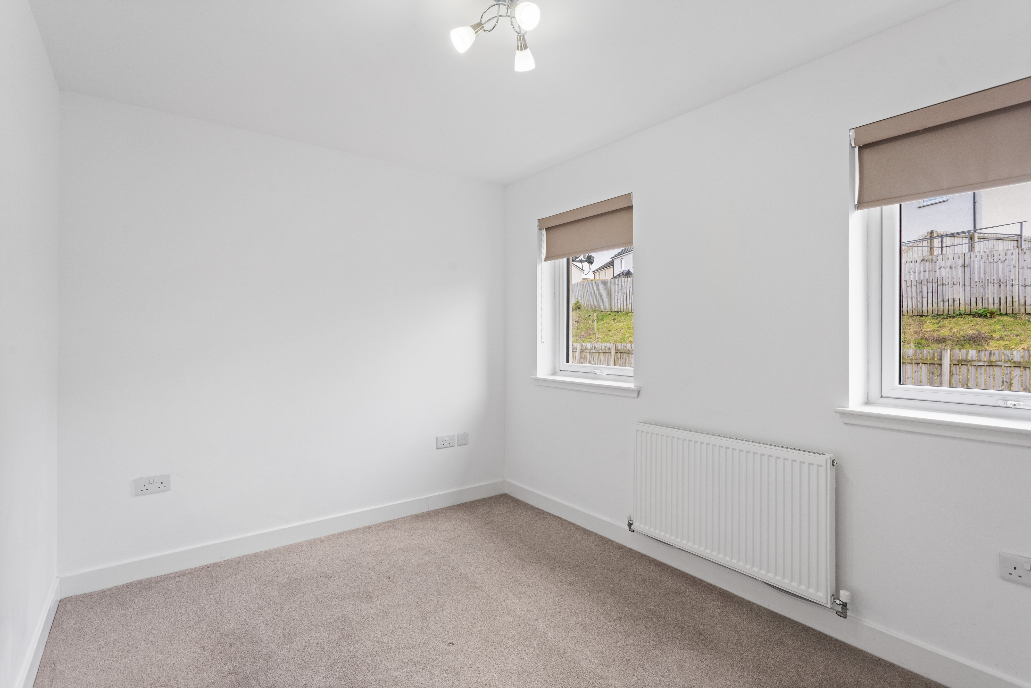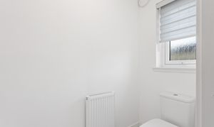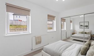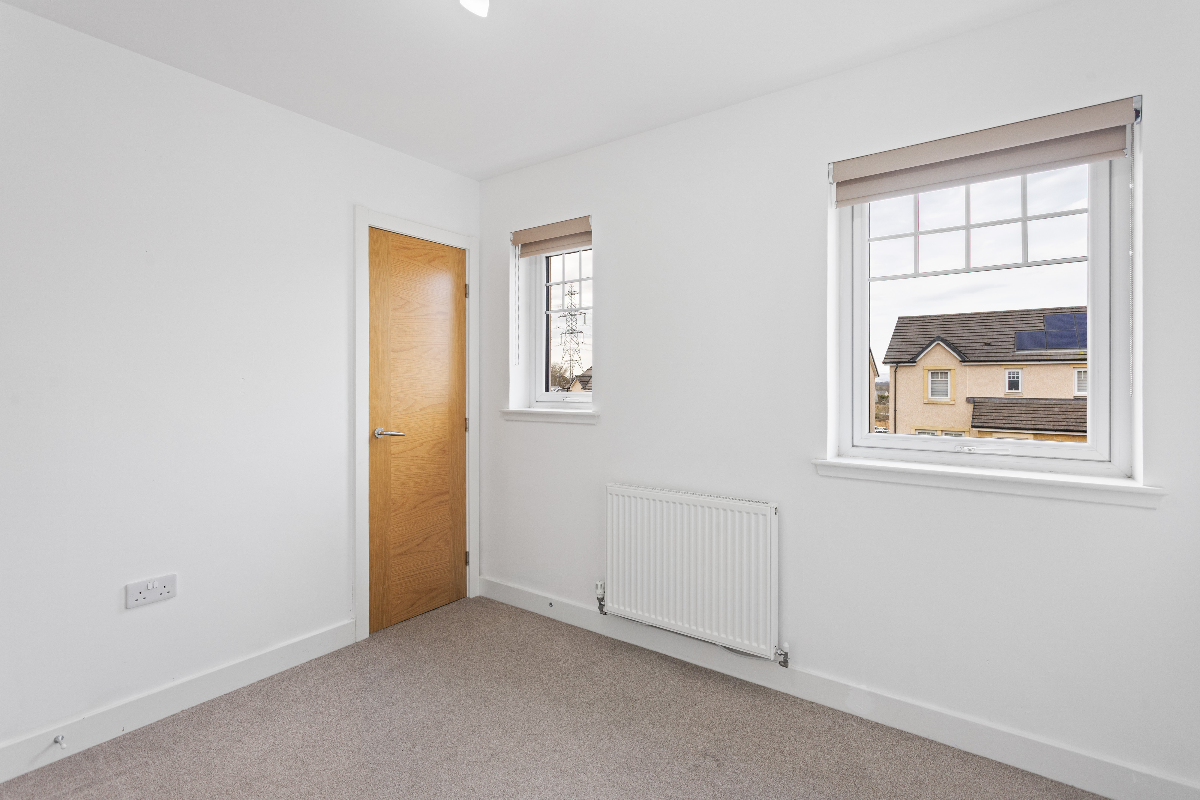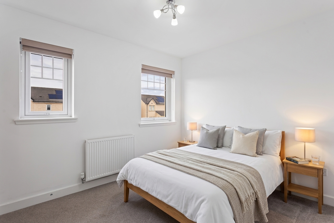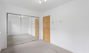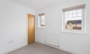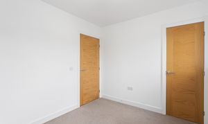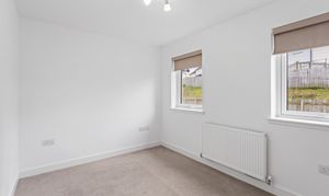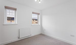 The second bedroom is equally well presented, finished with soft carpeting and neutral décor, making it a versatile space suitable as a guest room, nursery or home office. Both bedrooms benefit from modern radiators, clean lines and a calm, contemporary finish.