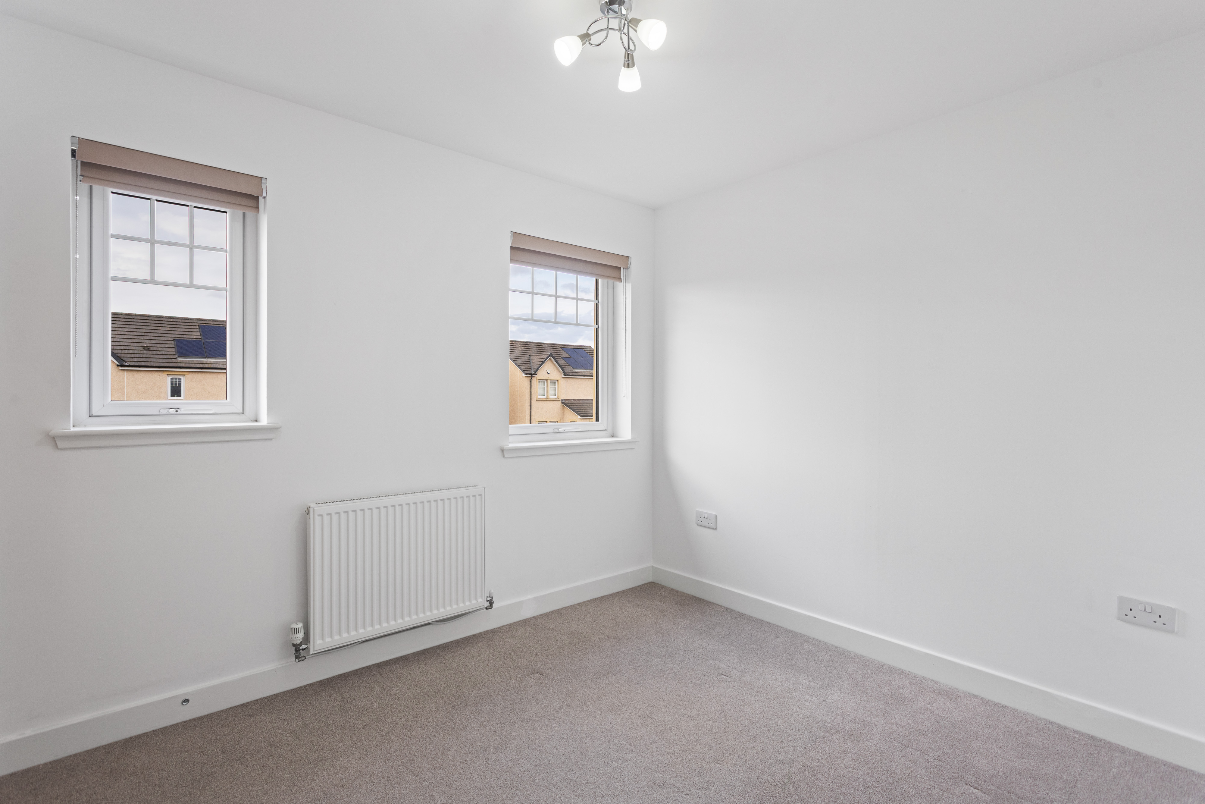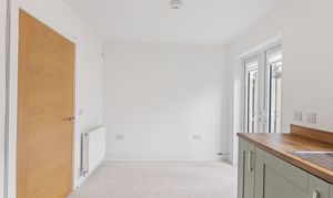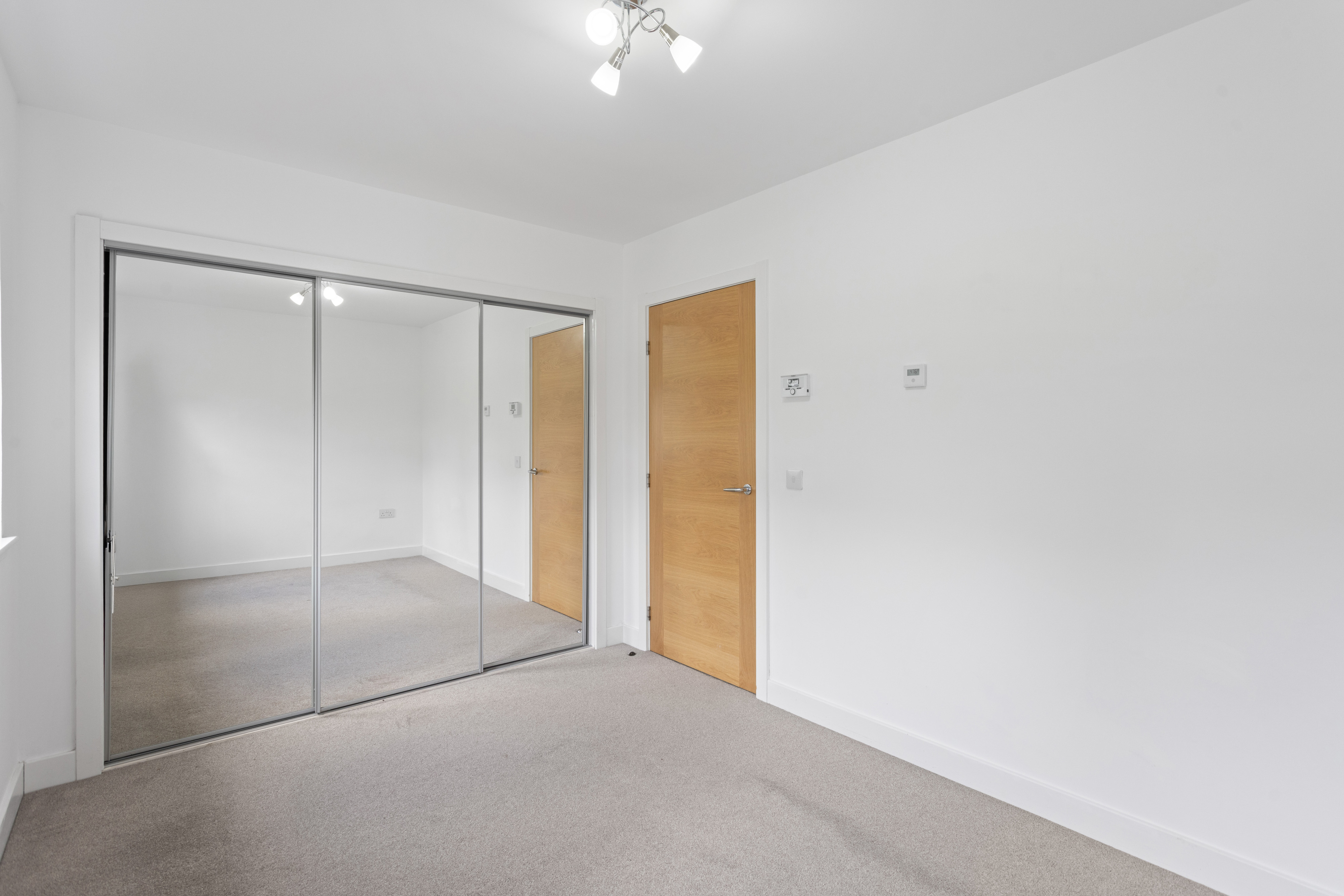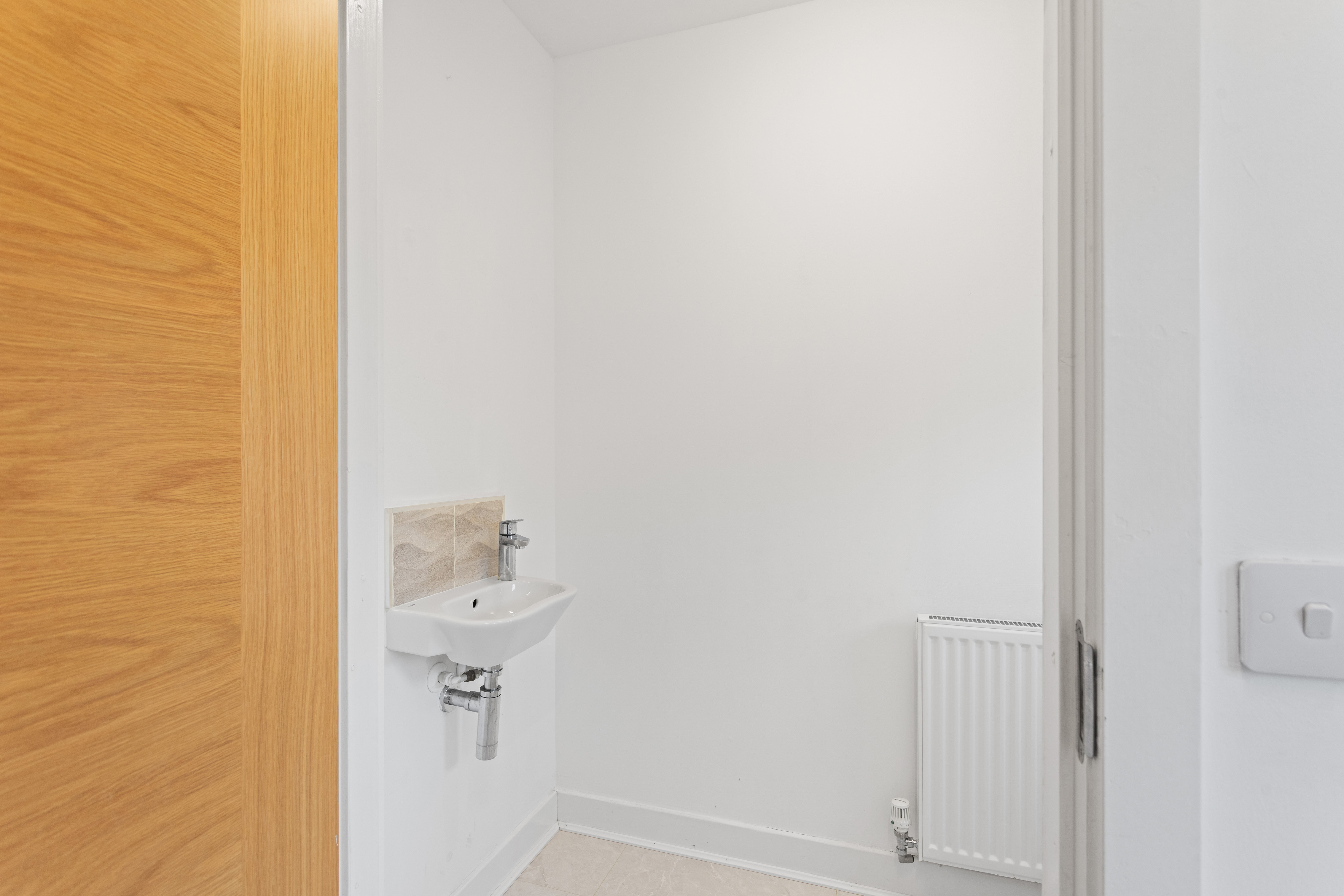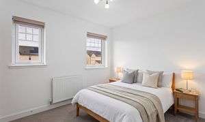 The second bedroom is equally well presented, finished with soft carpeting and neutral décor, making it a versatile space suitable as a guest room, nursery or home office. Both bedrooms benefit from modern radiators, clean lines and a calm, contemporary finish.