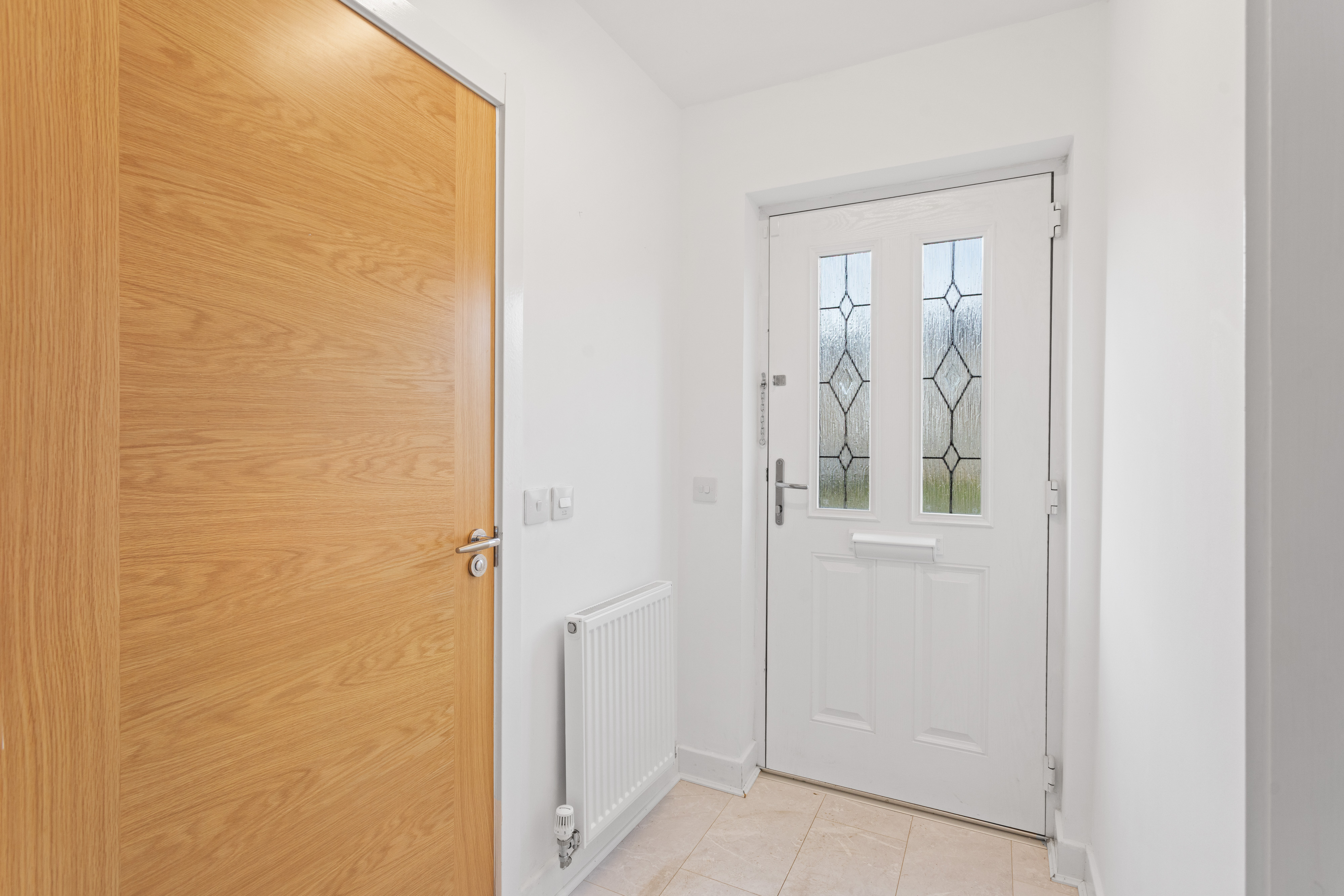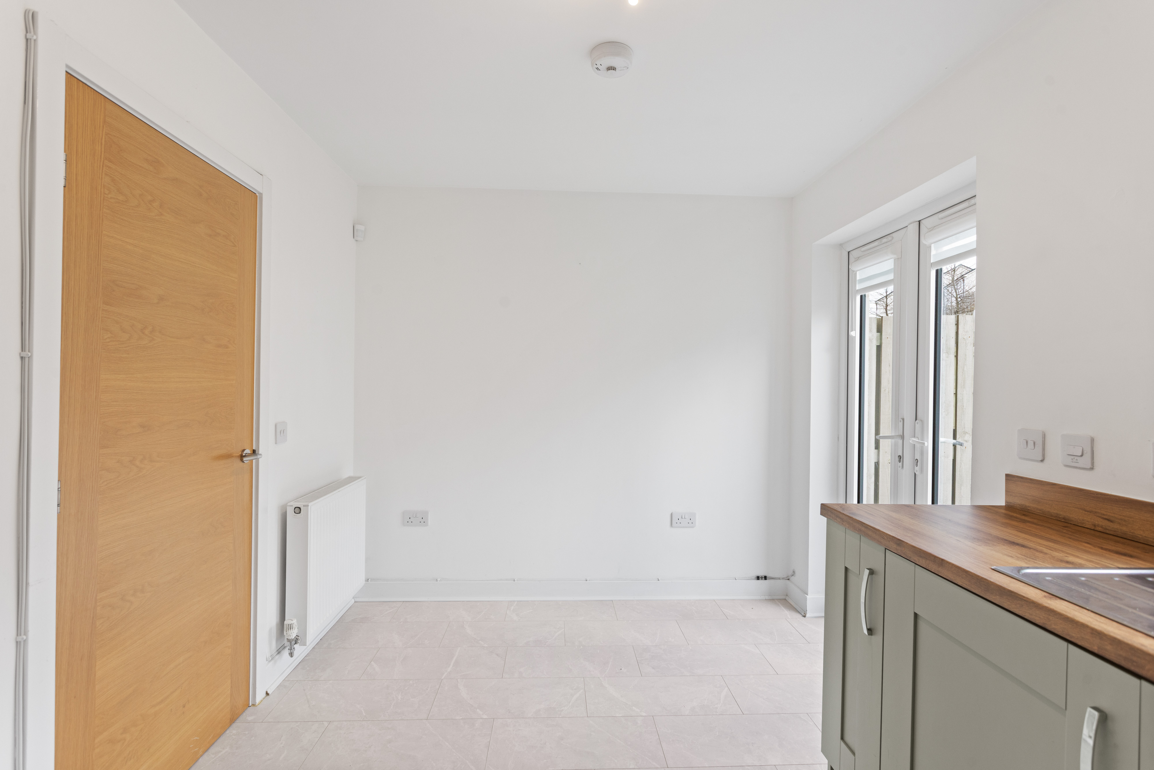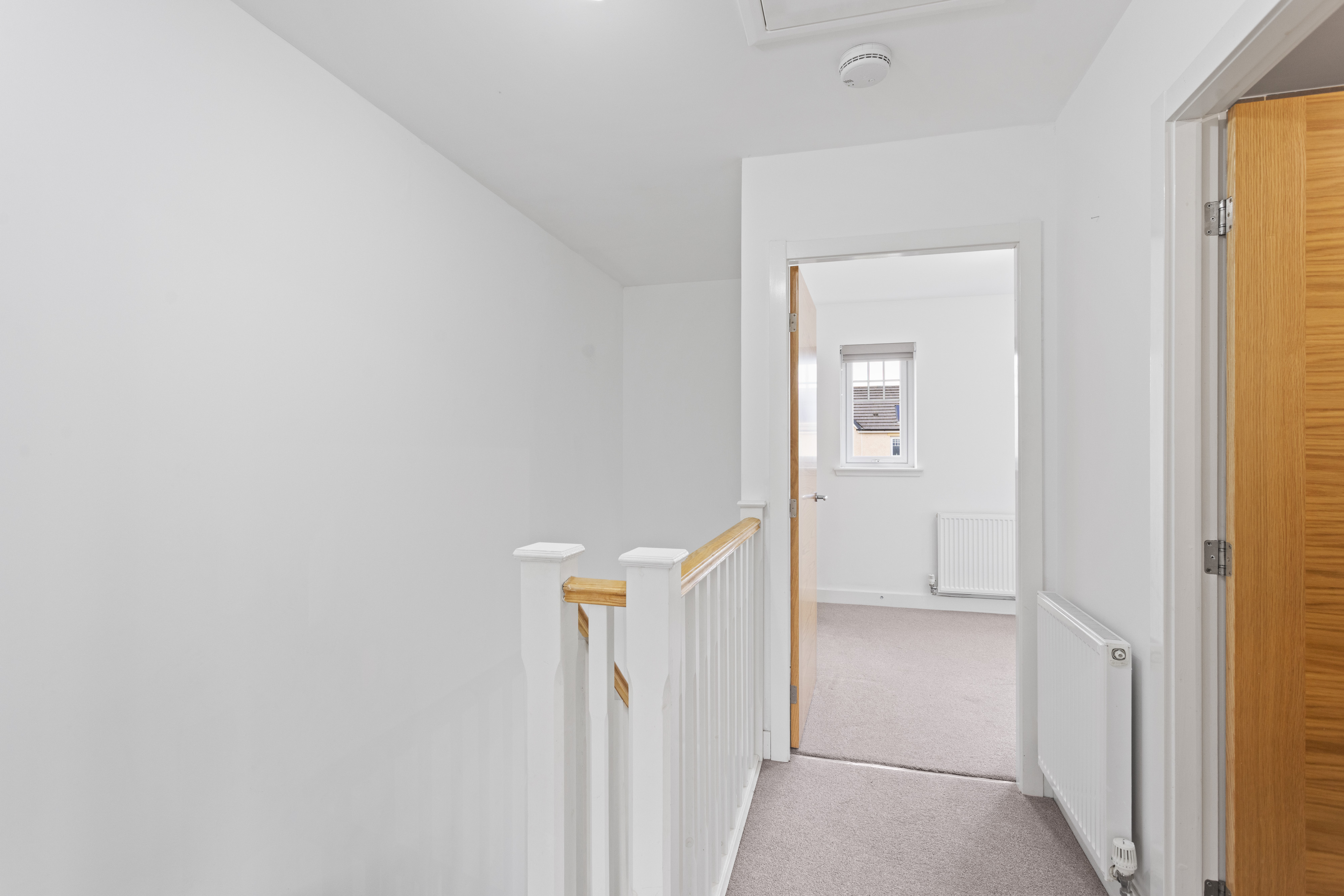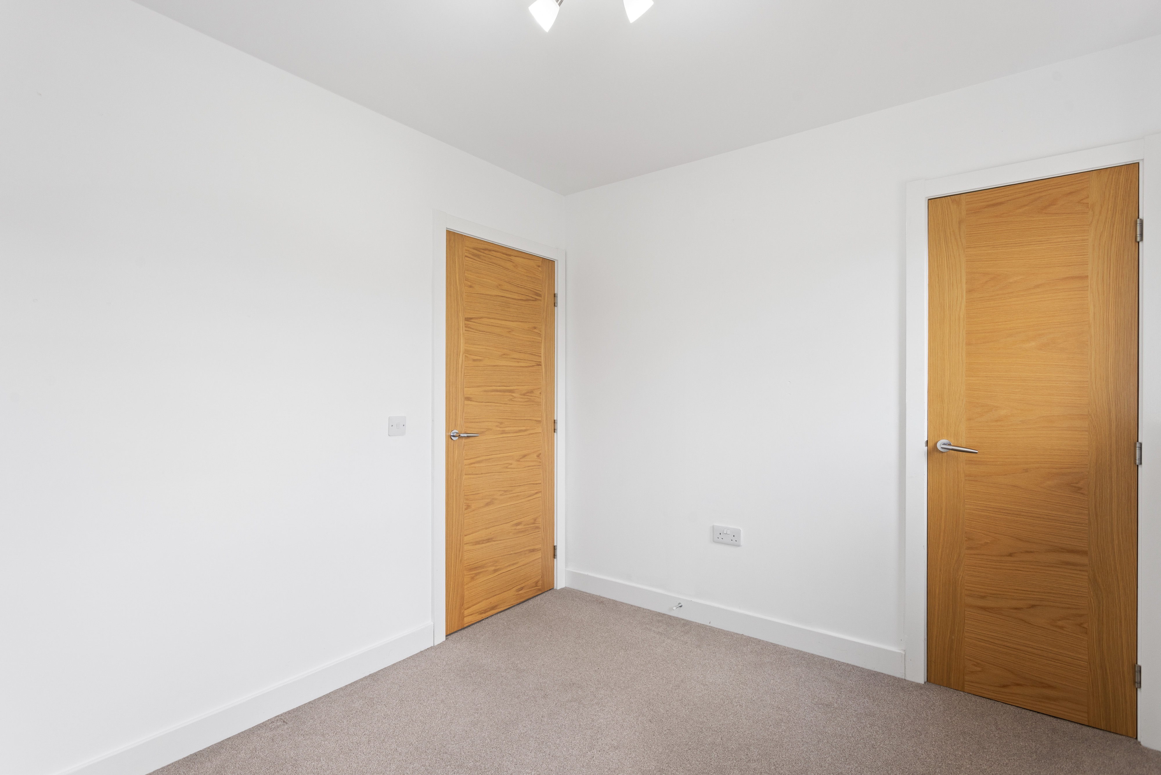 The second bedroom is equally well presented, finished with soft carpeting and neutral décor, making it a versatile space suitable as a guest room, nursery or home office. Both bedrooms benefit from modern radiators, clean lines and a calm, contemporary finish.