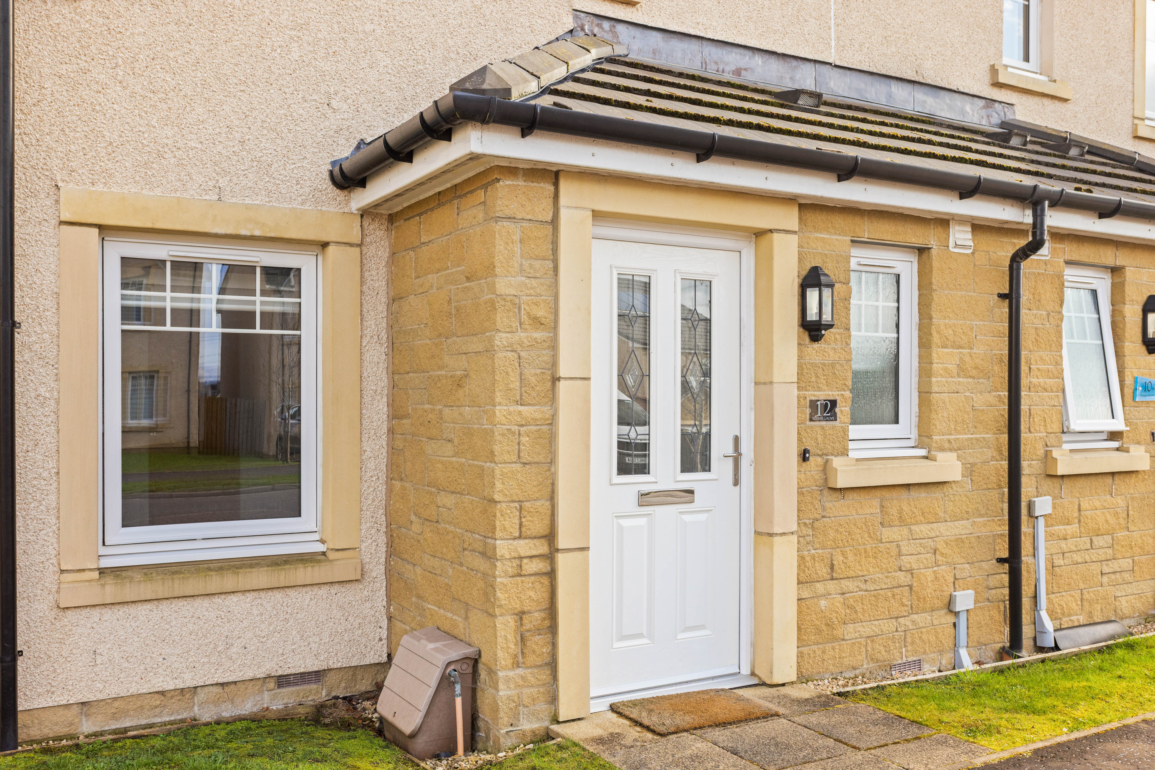 Approaching the home, you are immediately struck by its attractive façade and well maintained exterior, with a welcoming entrance framed by clean lines and contemporary finishes. The front door, featuring decorative glazed panels, allows natural light to filter through and sets the tone for the bright and stylish interiors that await inside.