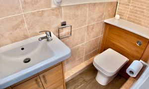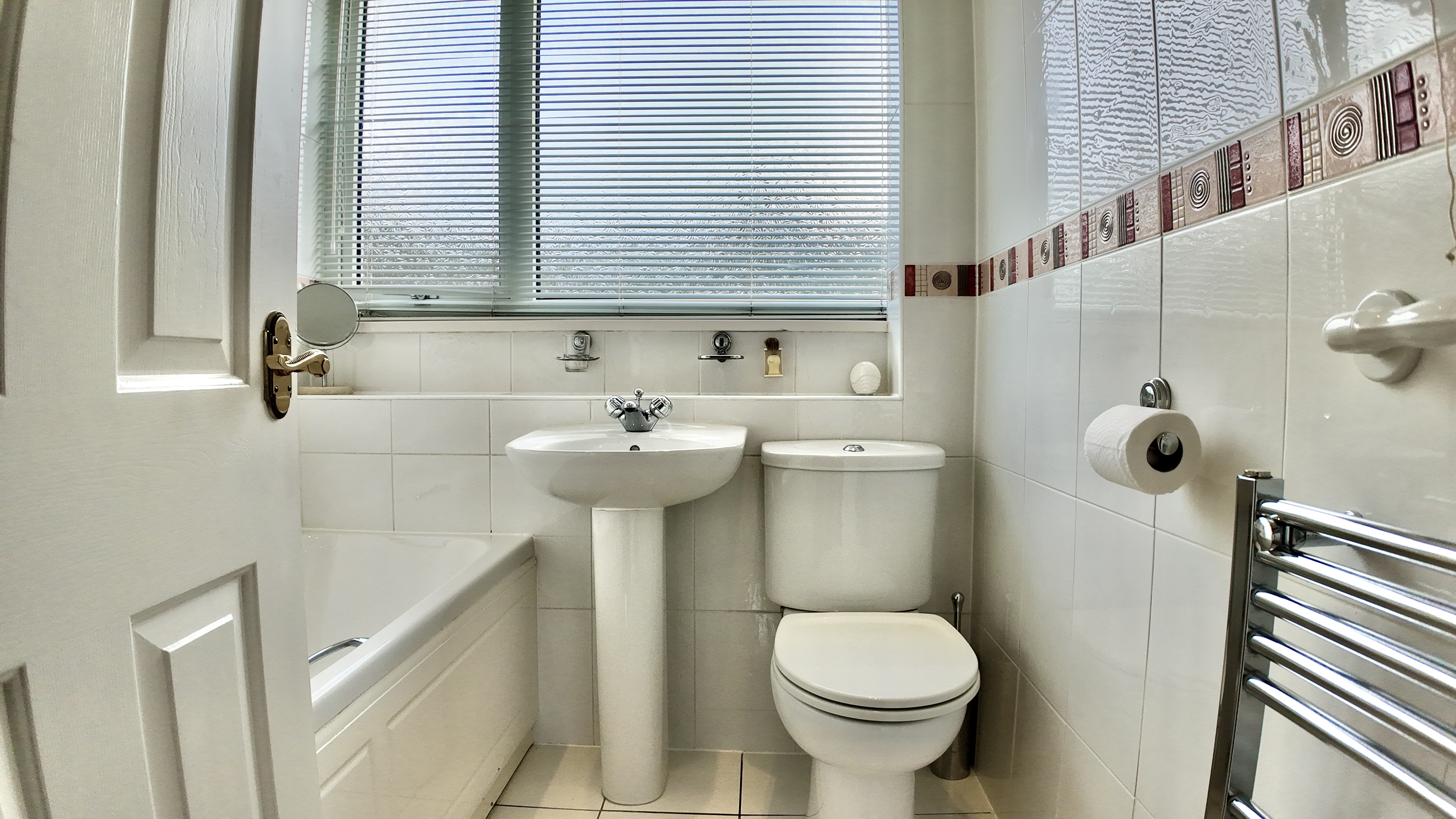 Upstairs, the spacious landing offers even more storage options, keeping clutter at bay. The family bathroom is tastefully decorated and offers a luxurious retreat for some well-deserved pampering after a long day.