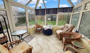 UPVC Conservatory with sliding door to garden.