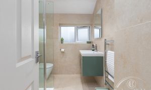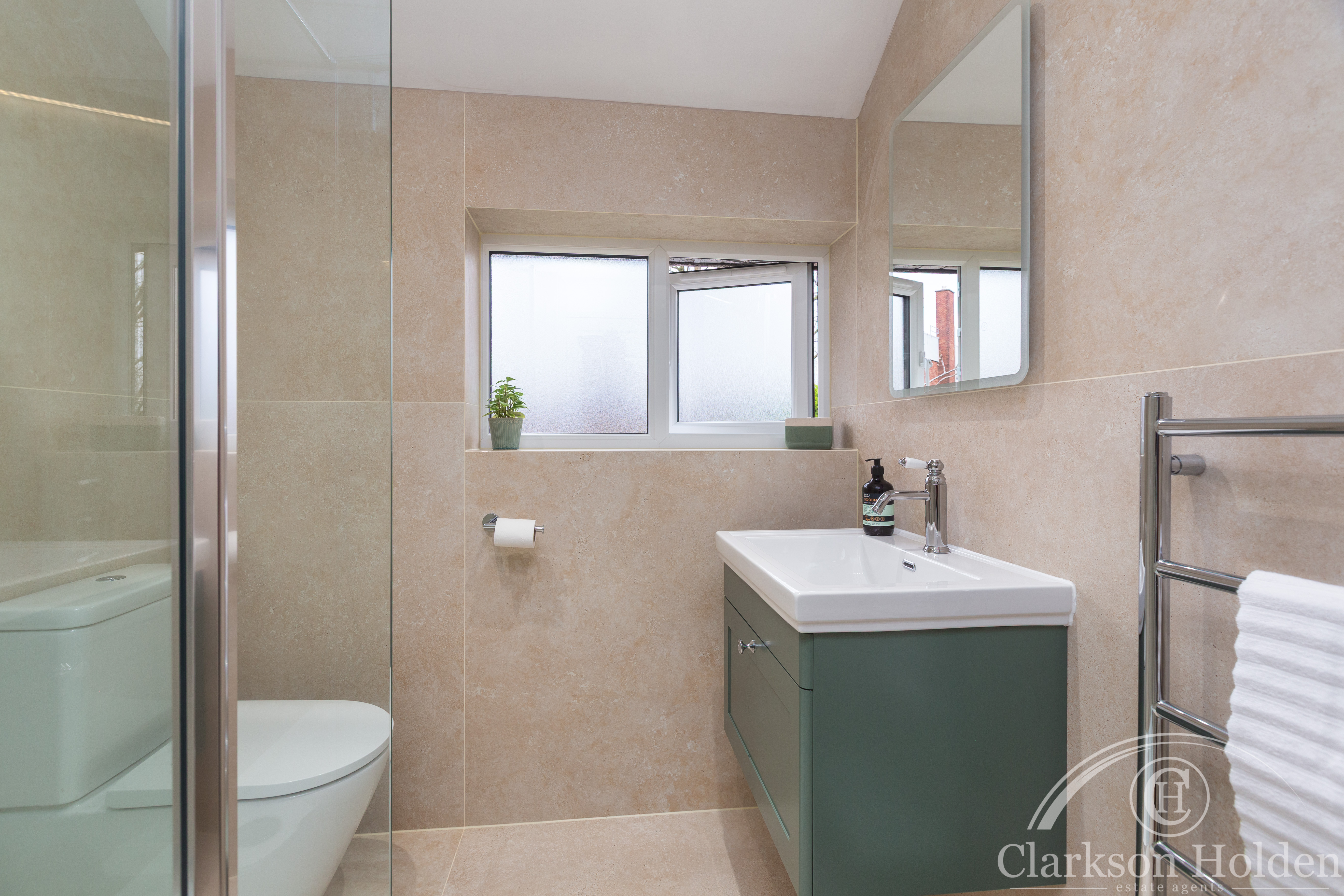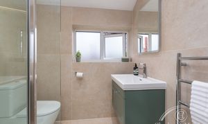 The brand new family bathroom is finished to a high standard, featuring modern fixtures and fittings for a touch of luxury.