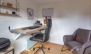 The property boasts a well-maintained rear garden with a patio area (ideal for outdoor dining or relaxation) and a versatile garden office, which is fully insulated and equipped with heating and power, making it perfect for those who work from home or require a dedicated creative space.
