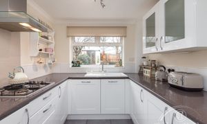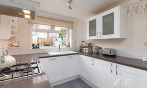 The contemporary kitchen is well equipped and thoughtfully designed, offering ample storage and worktop space to cater for daily family needs.