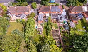 Very generous south facing rear garden which is mainly laid to lawn with mature shrubs and hedges, there are also spaces for a shed and/or greenhouse, a brick patio area with access to storage and outside water tap, a gravelled area and garden is fully enclosed by fencing.