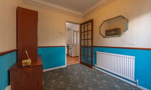 This charming home offers a delightful blend of period character and practical modern living. Stepping inside we are welcomed by an impressively sized living room, which is ideal for relaxing and entertaining guests, whilst connected to the rear conservatory for additional lounge space that is flooded by natural light. Continuing through the house we have the practical kitchen, which has ample room for storage and appliances thanks to numerous fittings, and two large cupboards that can be used for a pantry or to house utilities. The kitchen also connects to another versatile reception room, which would suit well as the dedicated dining room. The kitchen also opens out to a hallway that connects to a helpful utility room with a neighbouring W.C, aswell as providing another access point from the front of the house aswell as the rear garden.