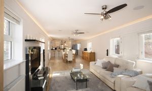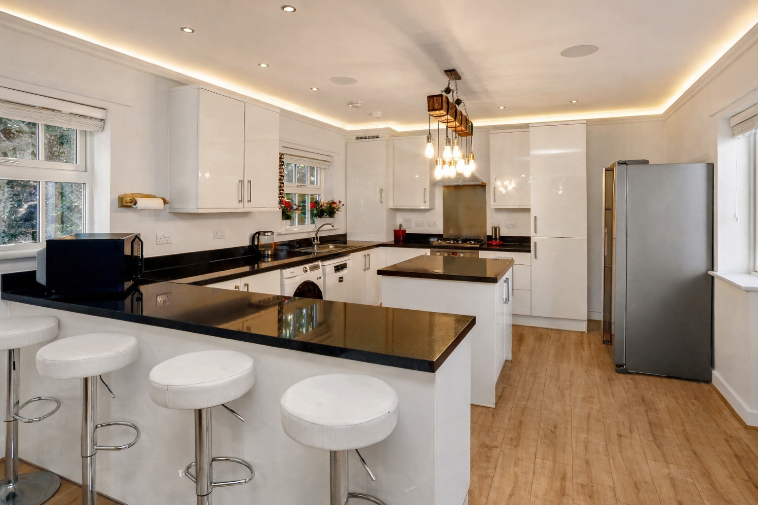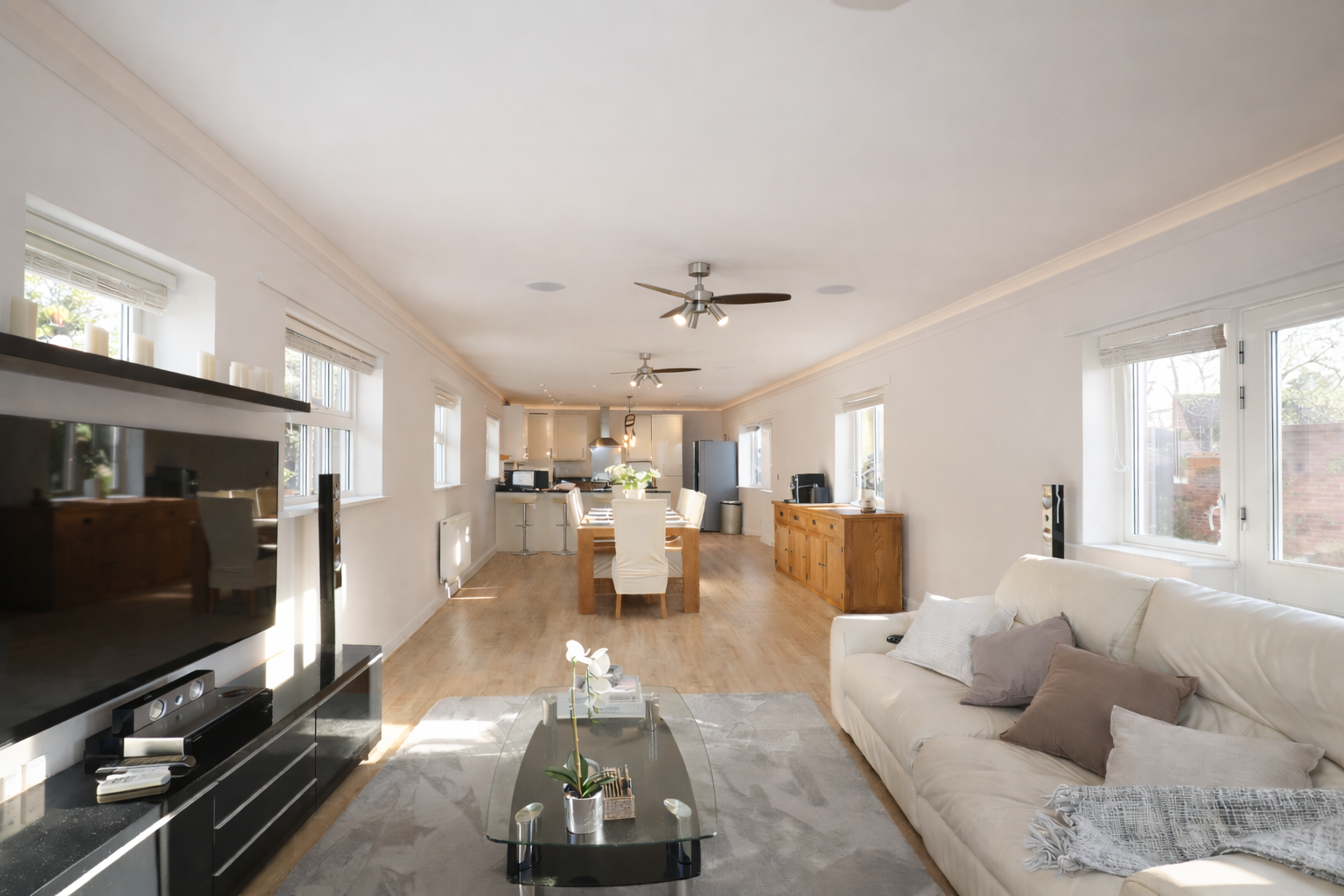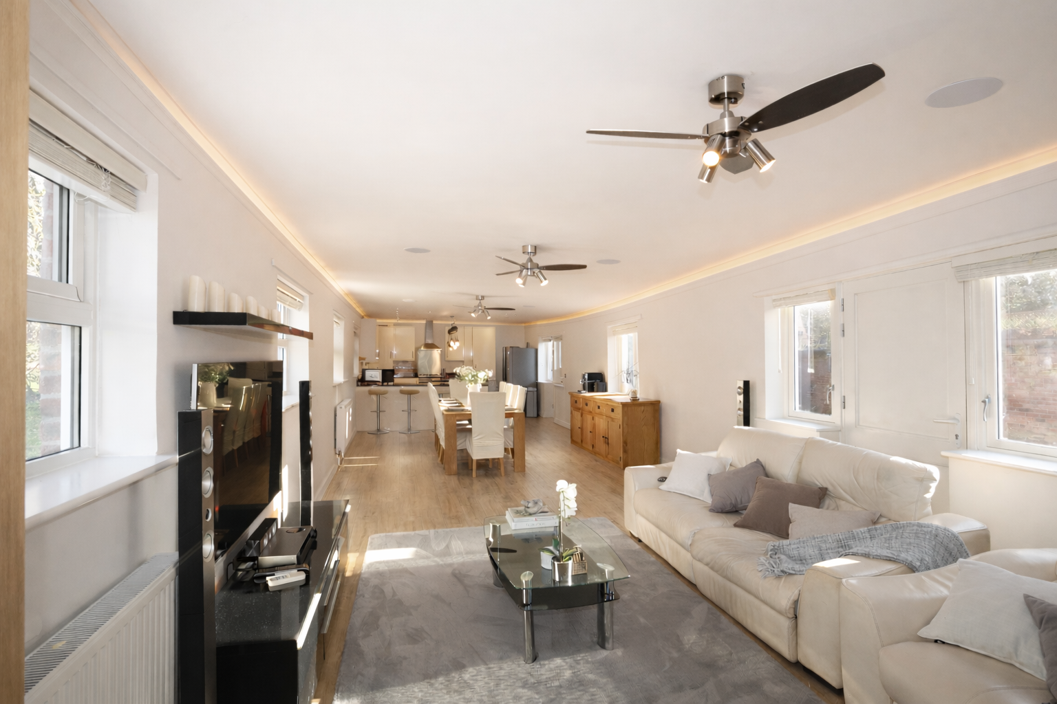 - Stunning 49ft open-plan kitchen, dining & living space with island, breakfast bar and room for a 12+ seater table