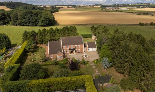 Hagg Farm extends across more than 30 acres of pasture, gardens, and woodland, with direct access to scenic local walks and bridleways. Approached via a long private lane, the property is set behind electric gates and a sweeping driveway, framed by landscaped lawns and mature hedging.