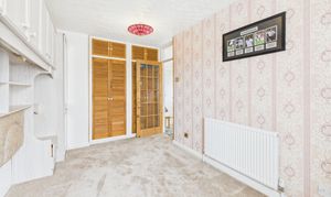 Window and French doors to the rear. Radiator. Understairs storage cupboard.