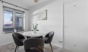 The property features two well-proportioned double bedrooms, both offering versatility and comfort. The main bedroom is spacious, providing ample room for a double bed and additional furniture. The second bedroom is currently arranged as a dining room, highlighting the flexible nature of the layout—it could equally serve as a guest room, home office, or hobby space, depending on lifestyle needs.