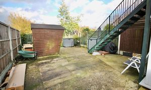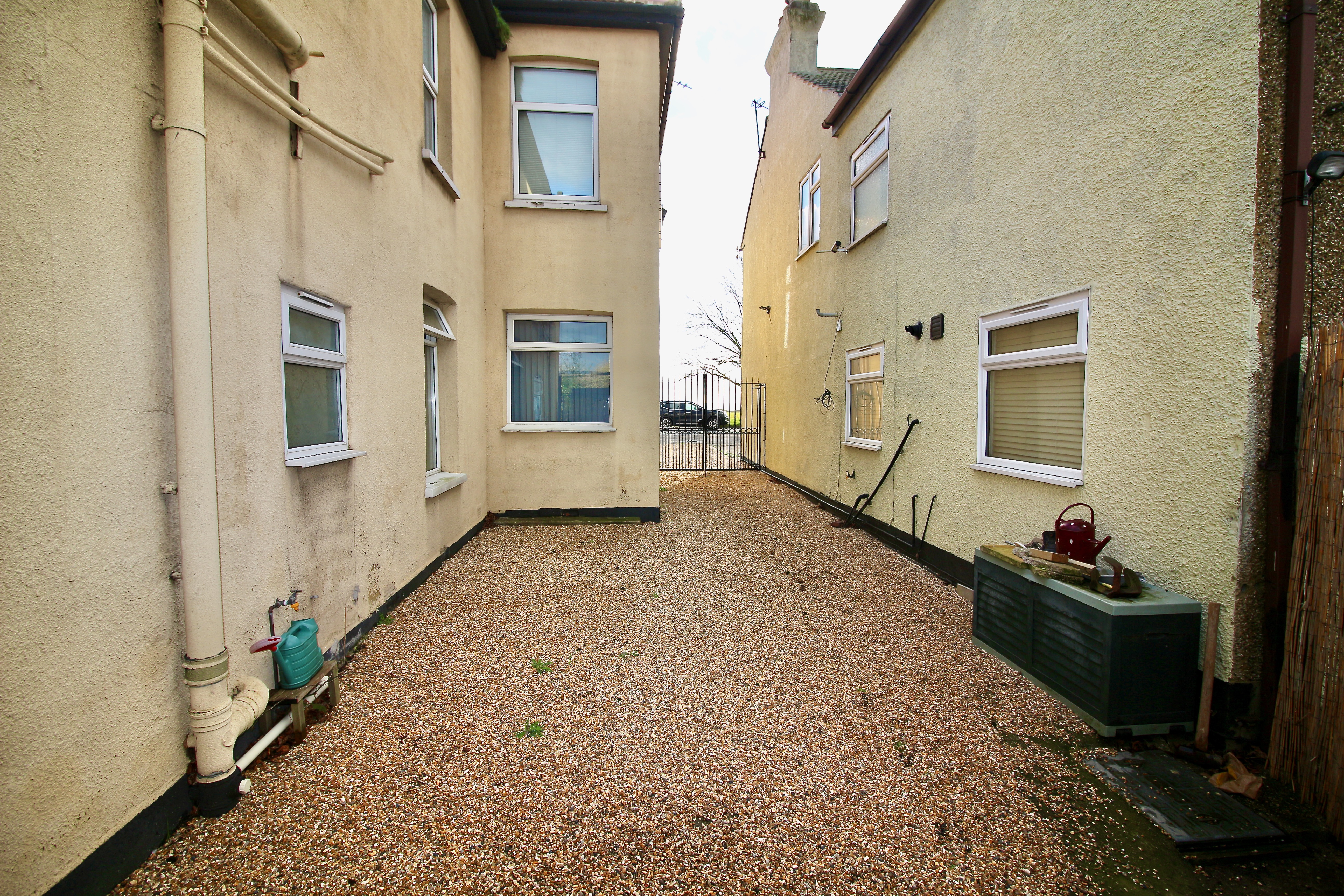 At the side and rear, are courtyard areas which are shared with the upstairs property and to the rear is a private garden area which owned on a 50/50 basis, with this flat owning the left hand side. This can be fenced to give a private garden if required.