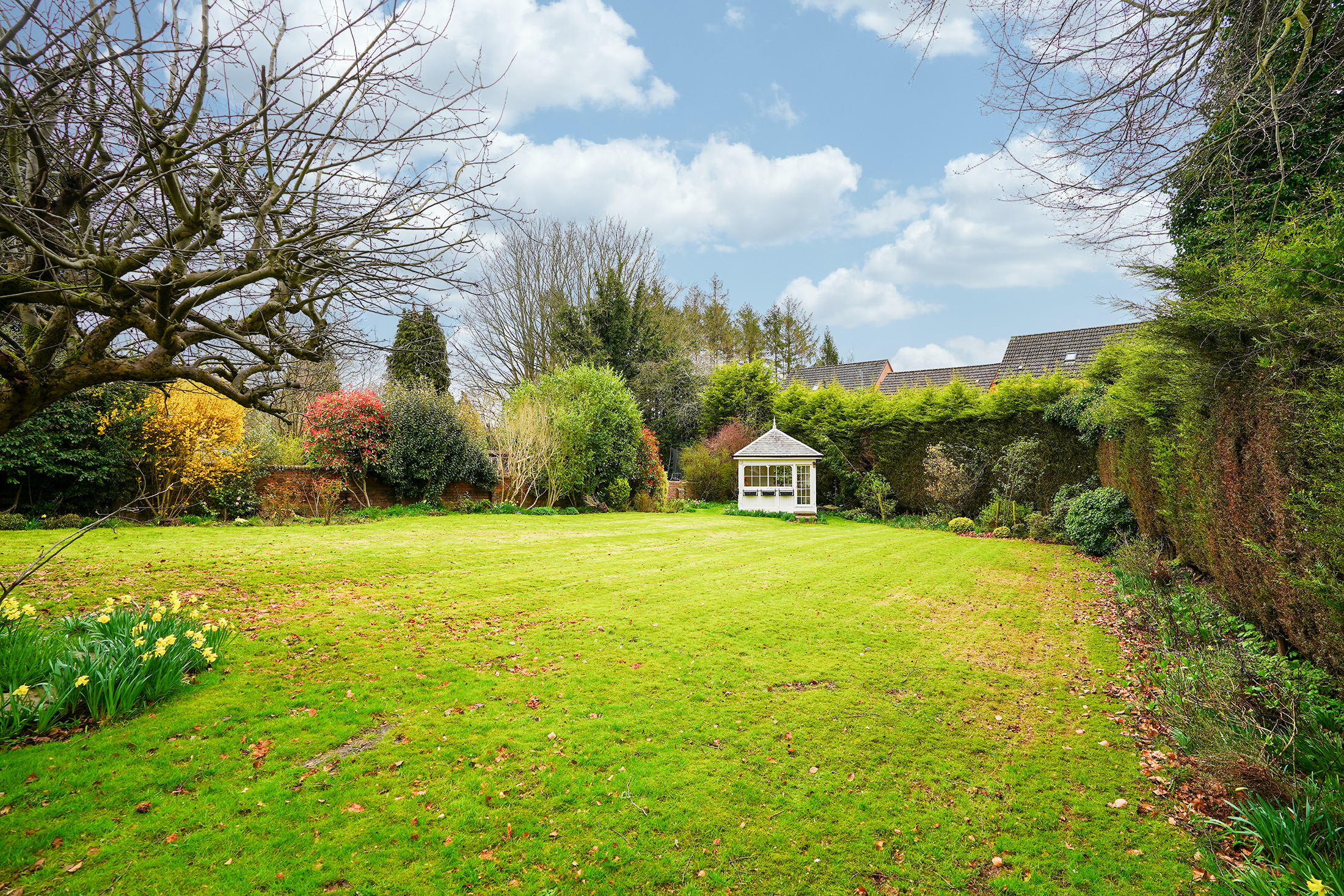 - Substantial Plot, Landscaped Grounds With Lawn, Mature Trees & Summer House