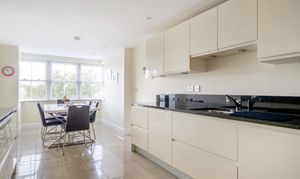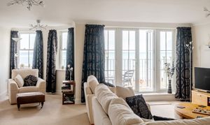 The front door to the apartment opens to a spacious entrance hall which leads to all rooms. The huge reception room enjoys windows across one wall with glorious sea views and opens onto a south facing balcony. The kitchen/breakfast room is fitted with contemporary cream gloss units under black granite worktops with integral appliances. The spacious principal bedroom has a dressing area with ample fitted wardrobes and a high quality full bathroom en-suite. There are two further bedrooms one of which has French doors opening onto a second balcony and a family bathroom.