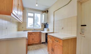 With a stainless steel sink/drainer, a range of wall and base units, a gas cooker point, plumbing for a washing machine, and a wall-mounted boiler.