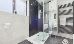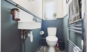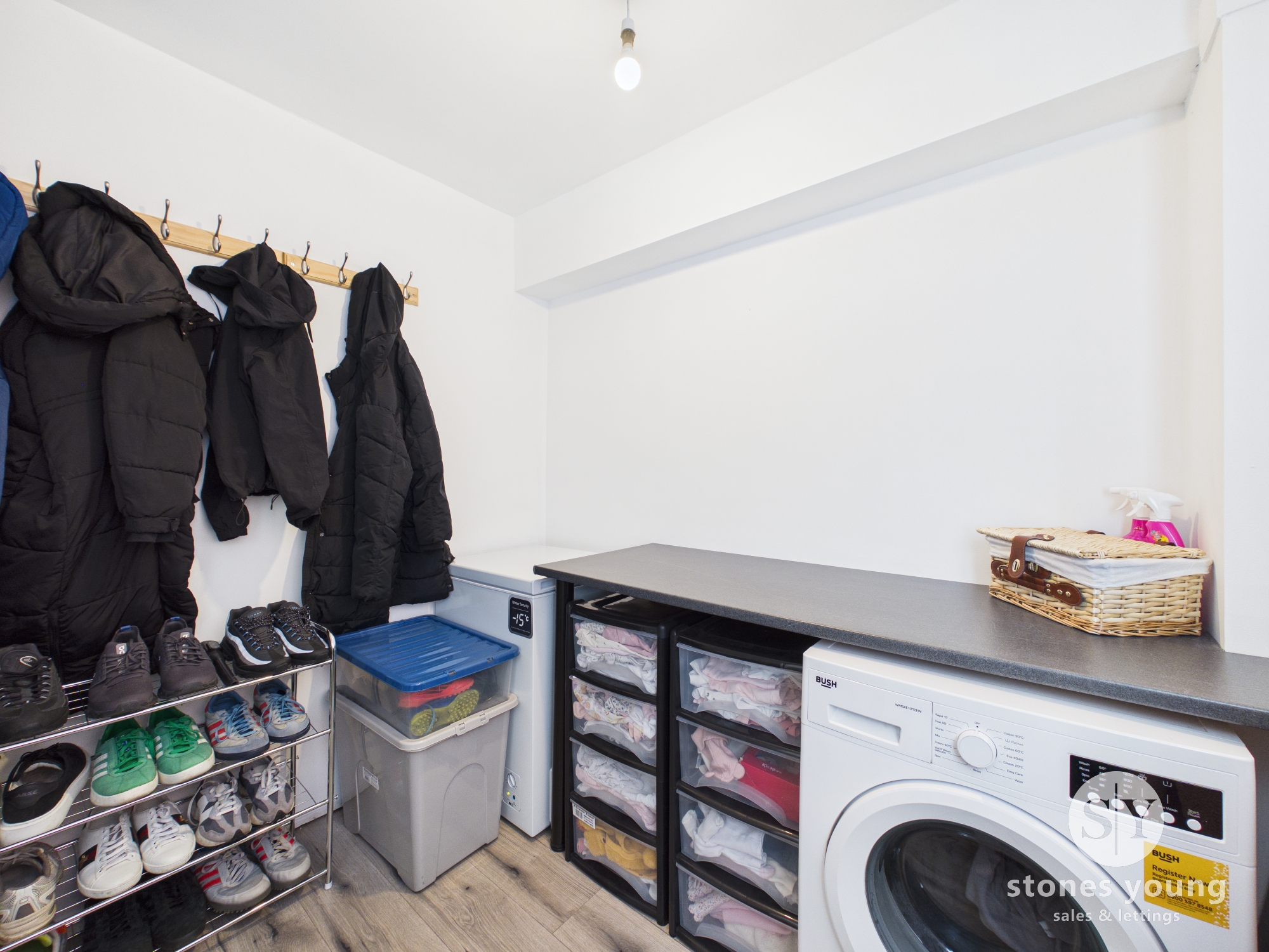 Laminate flooring, upvc double glazed frosted window, space for washing machine and tumble dryer