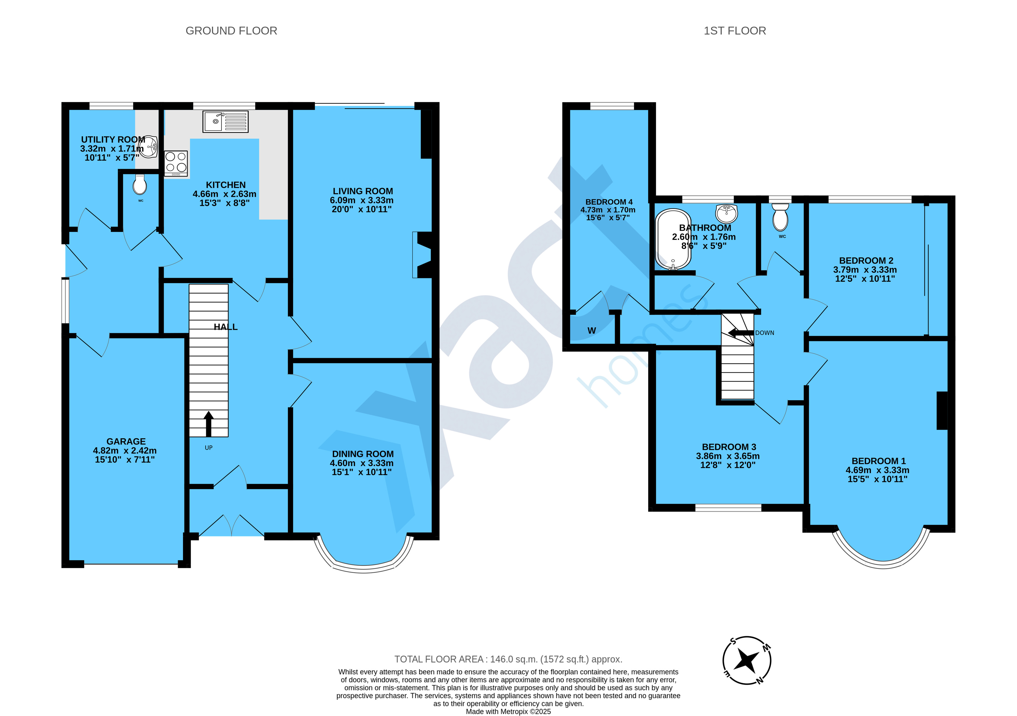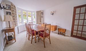 Upon entry, the welcoming hallway seamlessly connects the various spaces on the ground floor. Two generously sized reception rooms cater to different needs, with a large living room offering picturesque views of the rear garden, and a formal dining room perfect for hosting gatherings. The fitted kitchen, complete with an attached utility room, ensures practicality and convenience for daily living. A single garage is also included, providing additional storage or parking space.