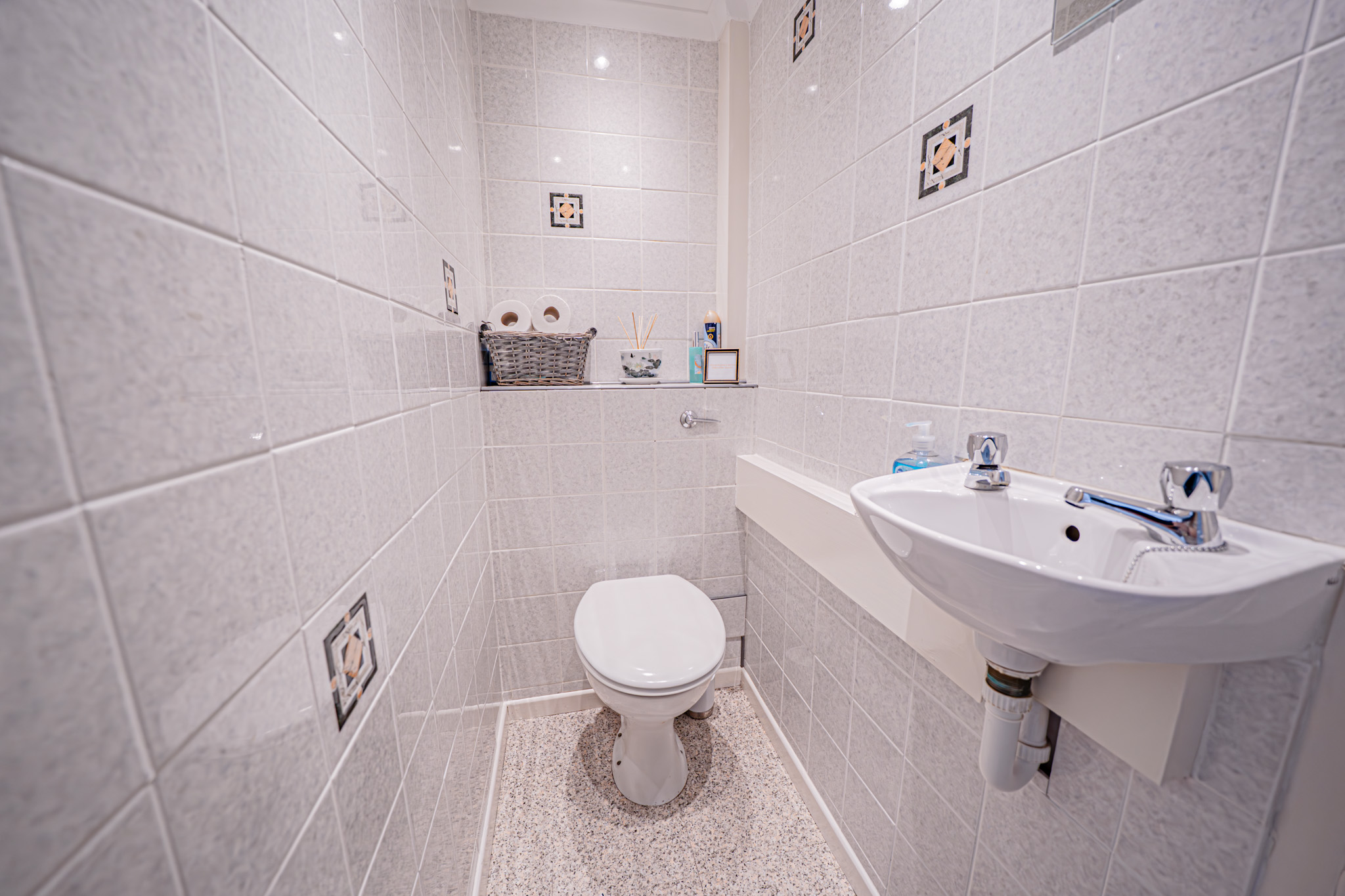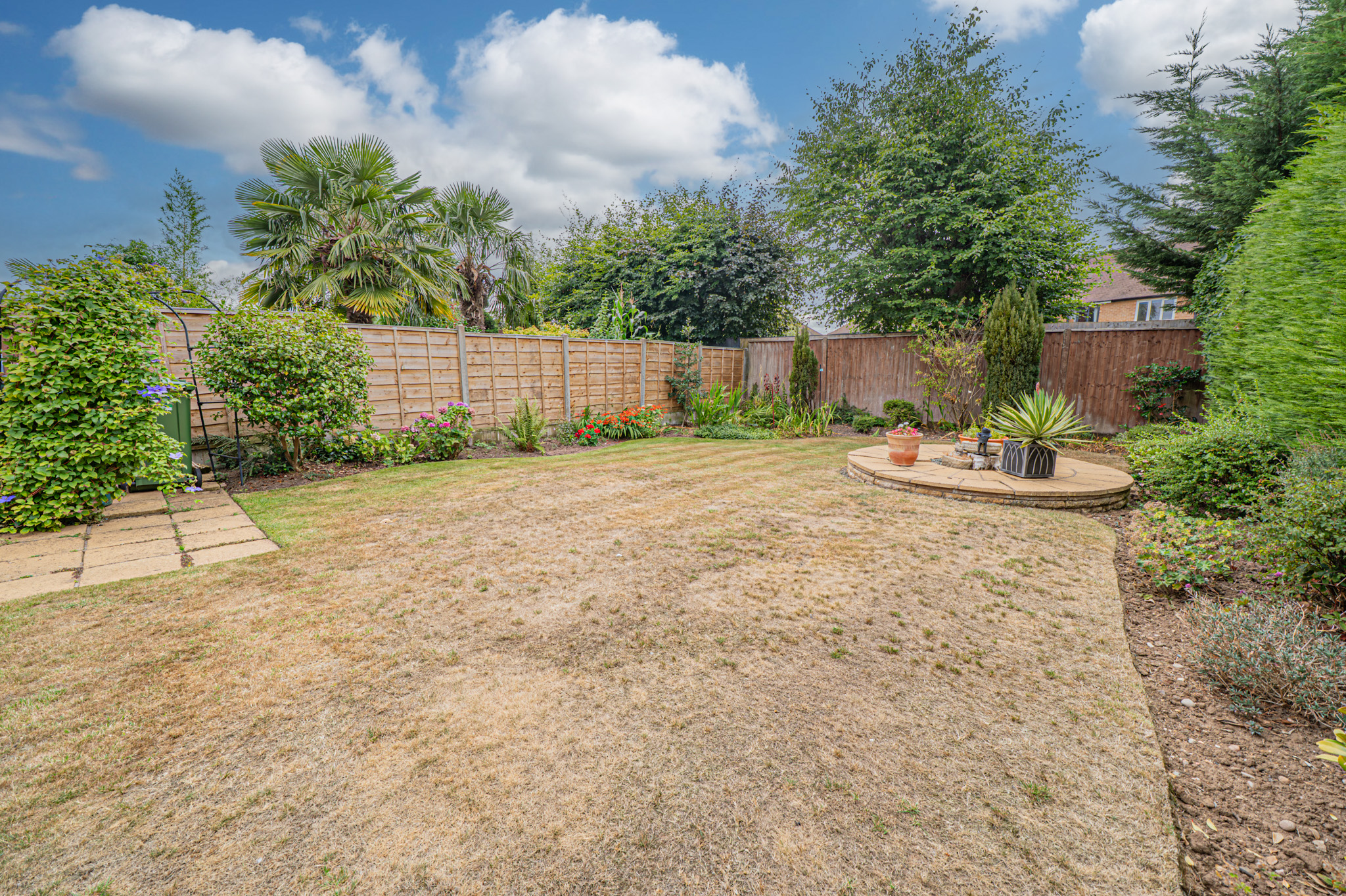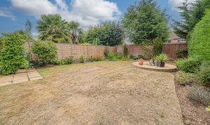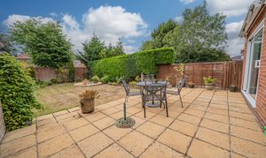 The property’s westerly facing rear garden is a sanctuary of tranquillity, complete with a patio seating area ideal for al fresco dining or relaxation. A driveway capable of accommodating multiple vehicles adds to the convenience of this residence.