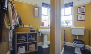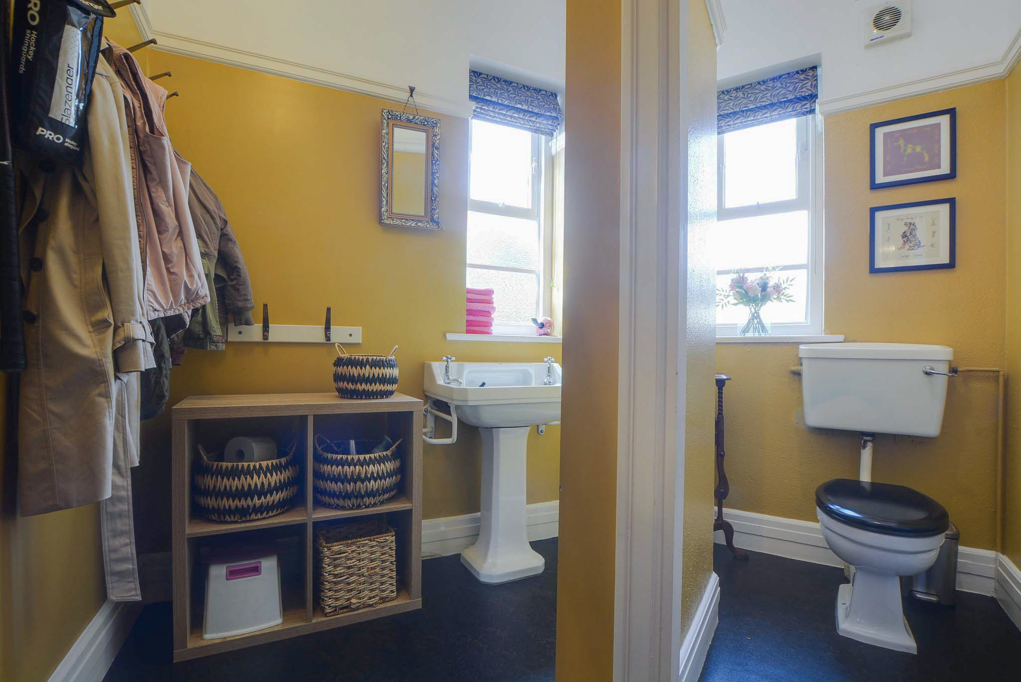 With windows to the side and rear elevations, picture rail, low-level WC, wash hand basin, coat hooks, picture rail, cast iron radiator.