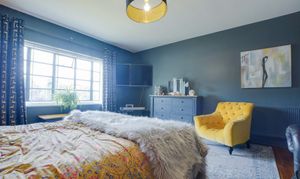 With window to the front elevation, oak floor, wash hand basin with tiled splashback, TV point, radiator.
