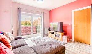The lounge area is a real highlight—bright and airy thanks to the large sliding doors that open directly onto your own private terrace. It's the kind of feature that instantly makes a place feel like home.