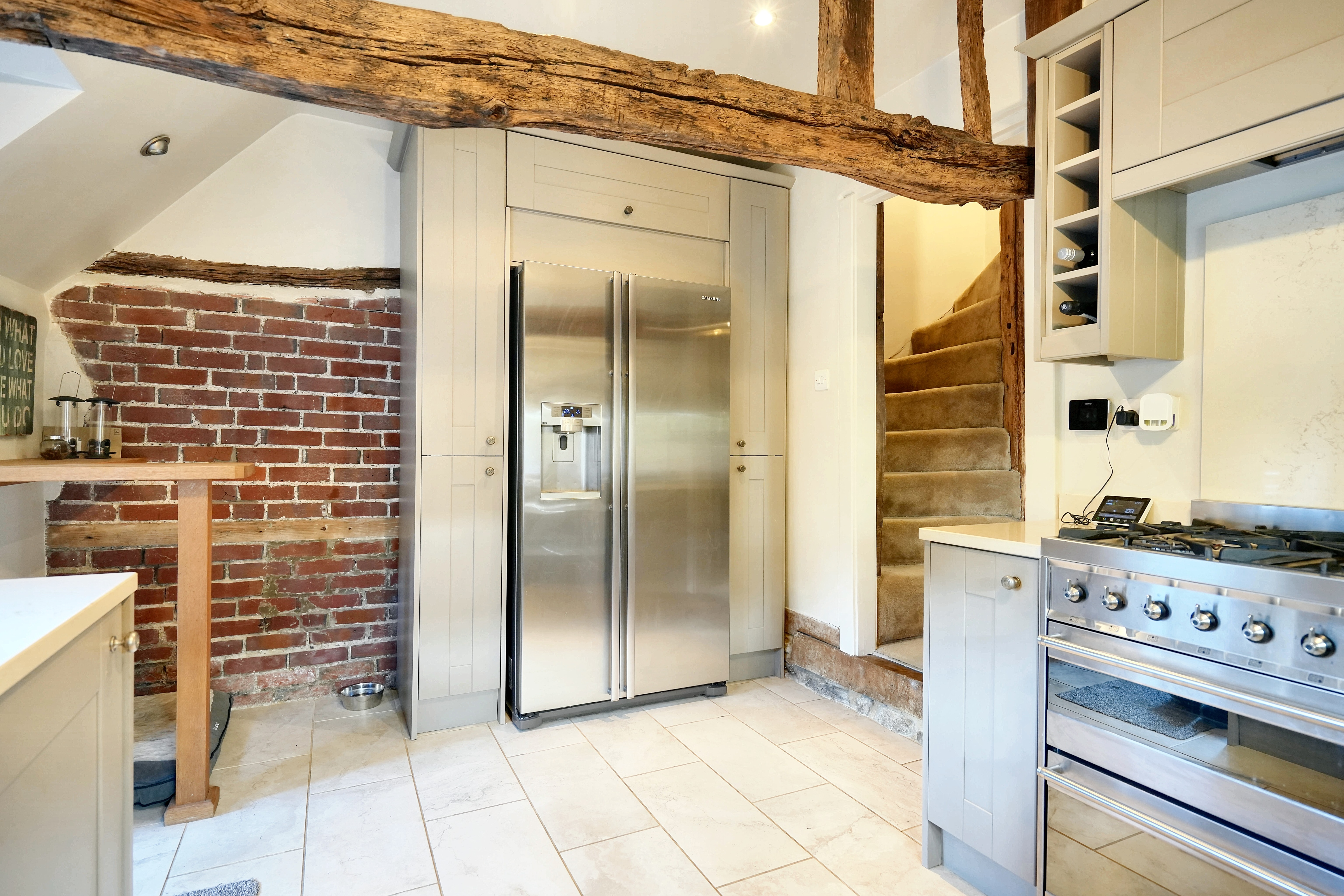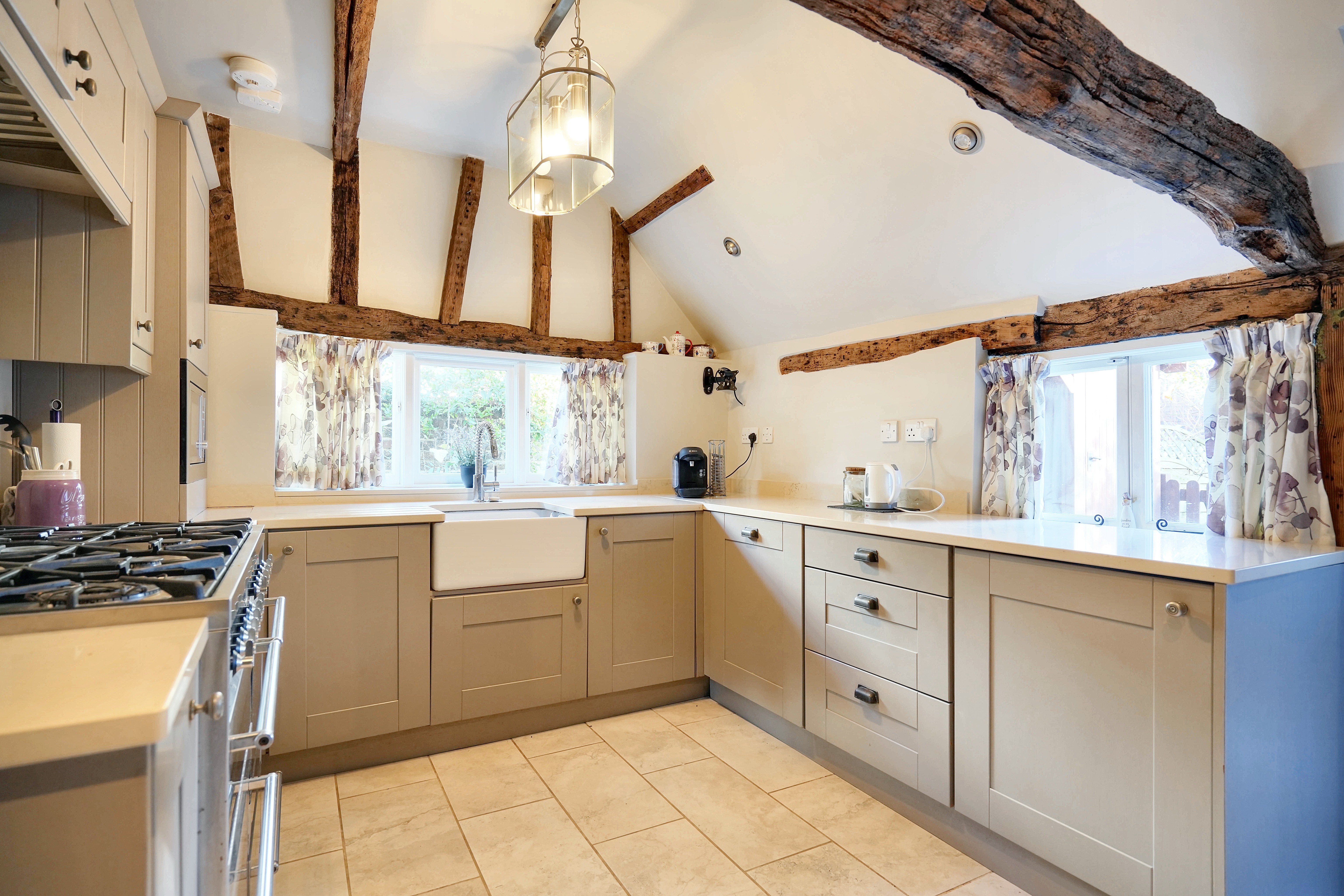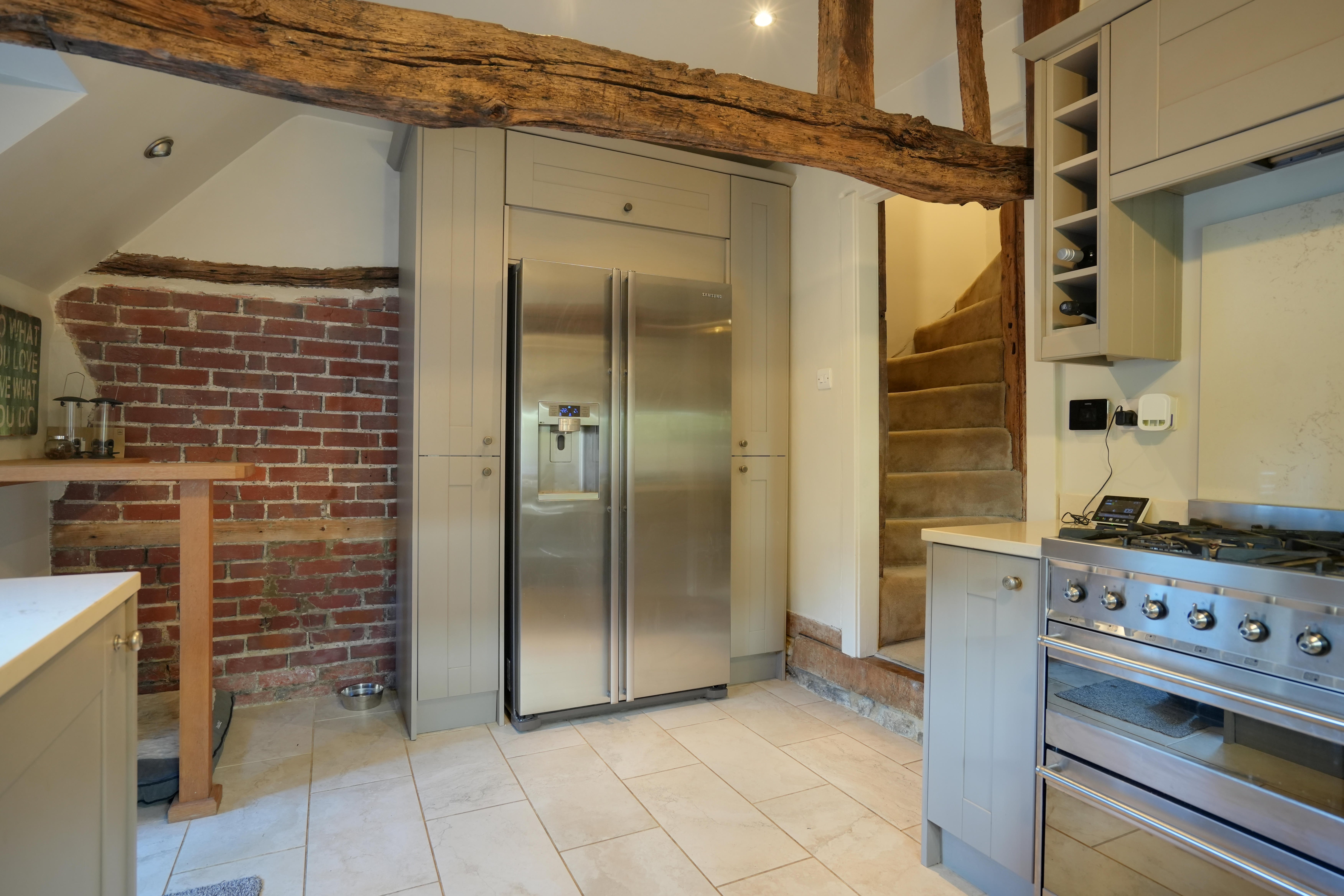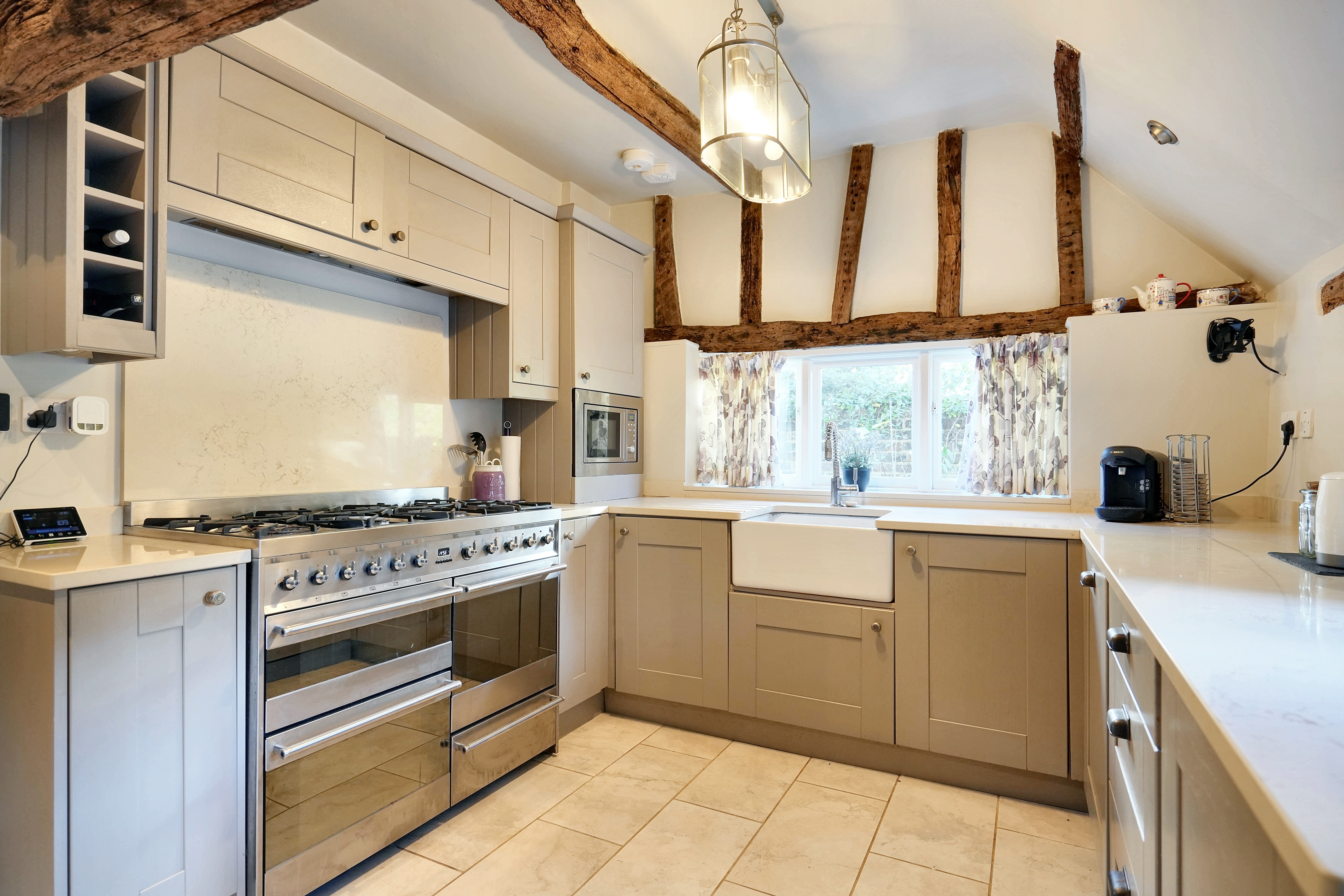 The kitchen is a delightful fusion of character and practicality, featuring a classic Belfast sink, a range cooker, an American fridge freezer, a built-in microwave, a dishwasher and a washing machine (all thoughtfully integrated to cater to contemporary lifestyles while preserving the cottage’s timeless appeal).