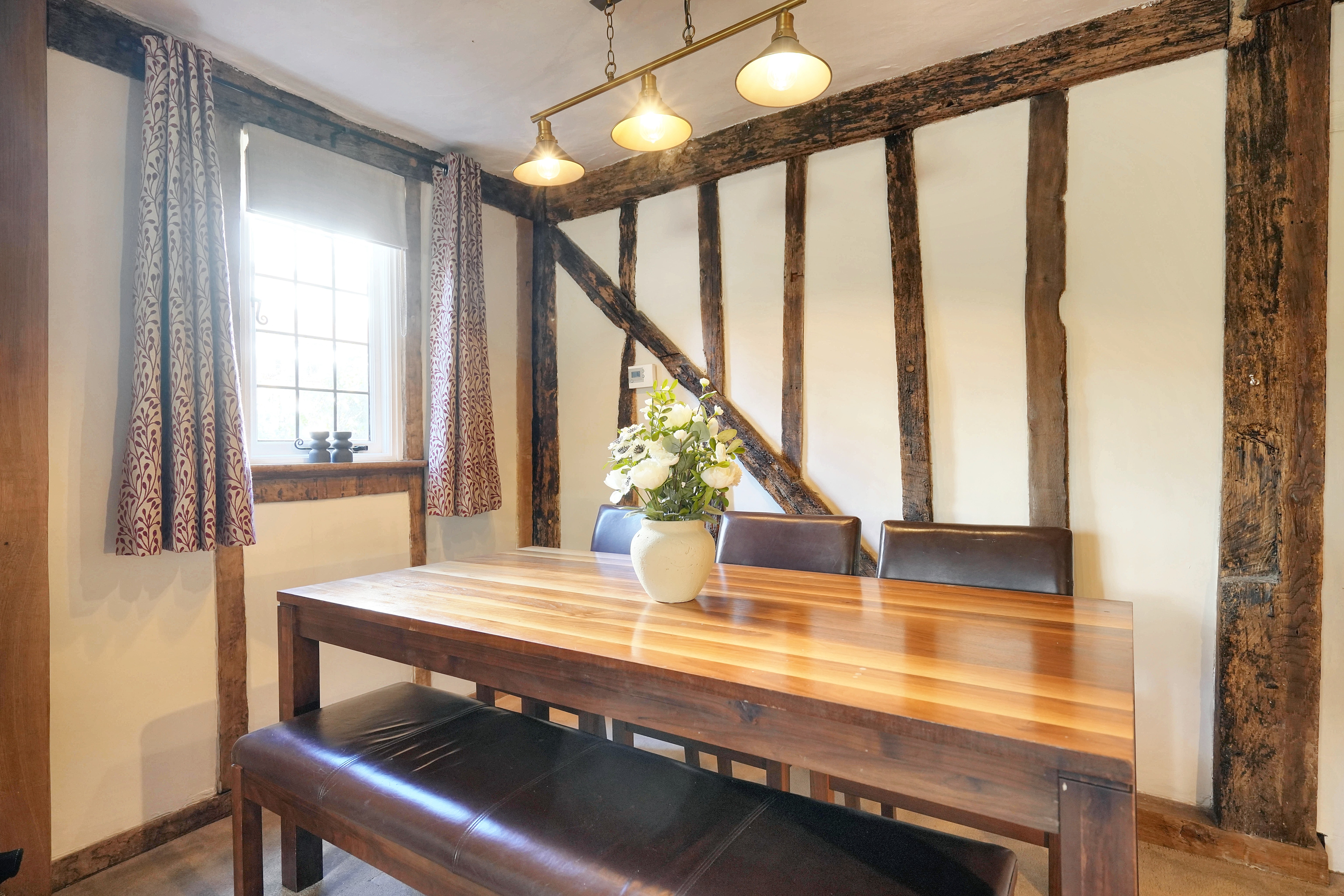 Nestled in the heart of a picturesque village, this truly exceptional Grade II listed three bedroom semi detached cottage offers a rare opportunity to reside in a home that seamlessly blends historic charm with modern convenience. The property is brimming with period features, including exposed oak beams and a magnificent inglenook fireplace that serves as the centrepiece of the cosy lounge and dining area, creating an inviting space for relaxation and entertaining.