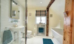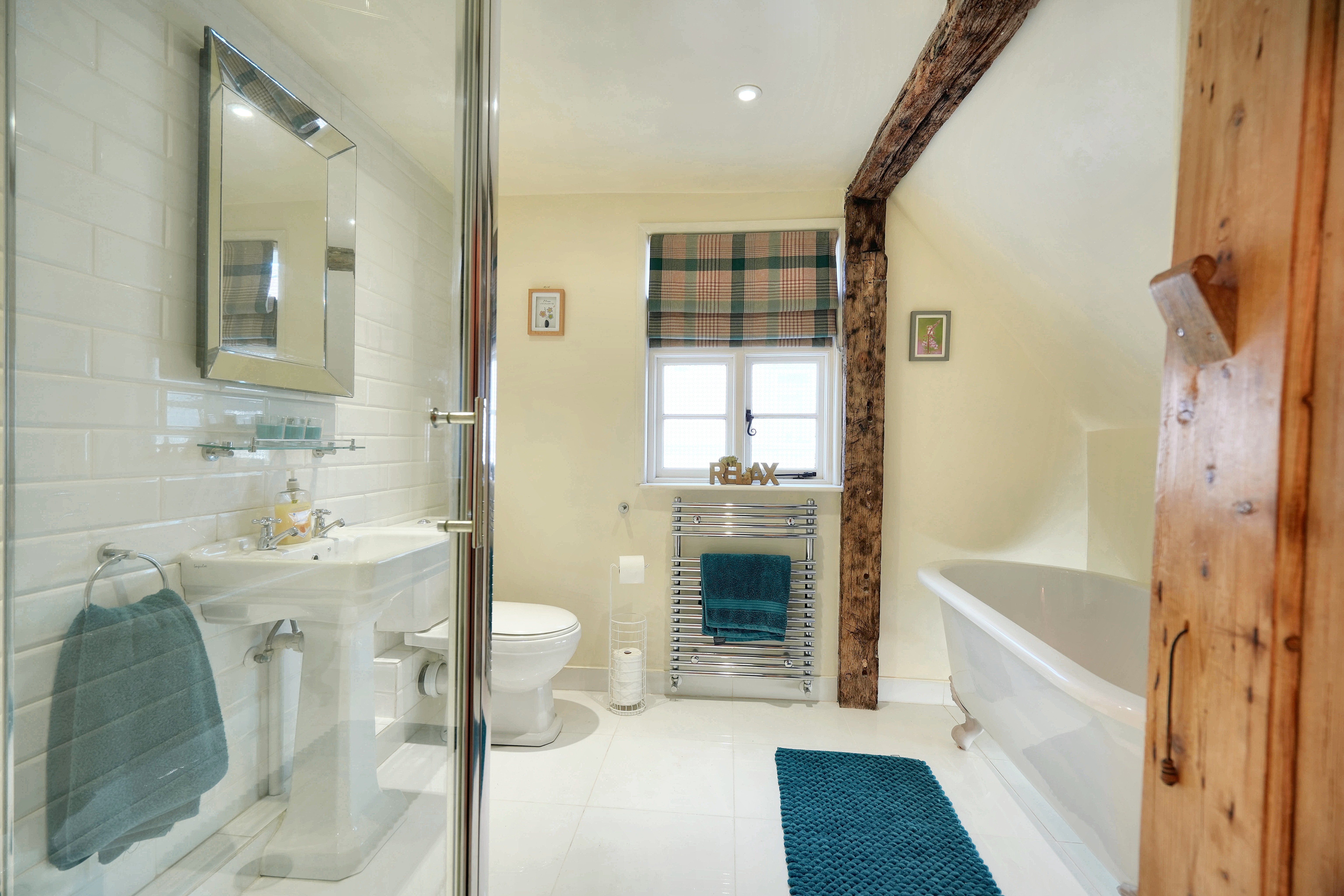 Upstairs, three well-proportioned bedrooms provide comfortable and flexible accommodation, each benefitting from the unique character of the property, while the family bathroom is beautifully appointed with a traditional roll top bath and a separate shower, offering a touch of luxury and indulgence.
