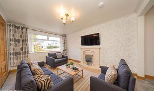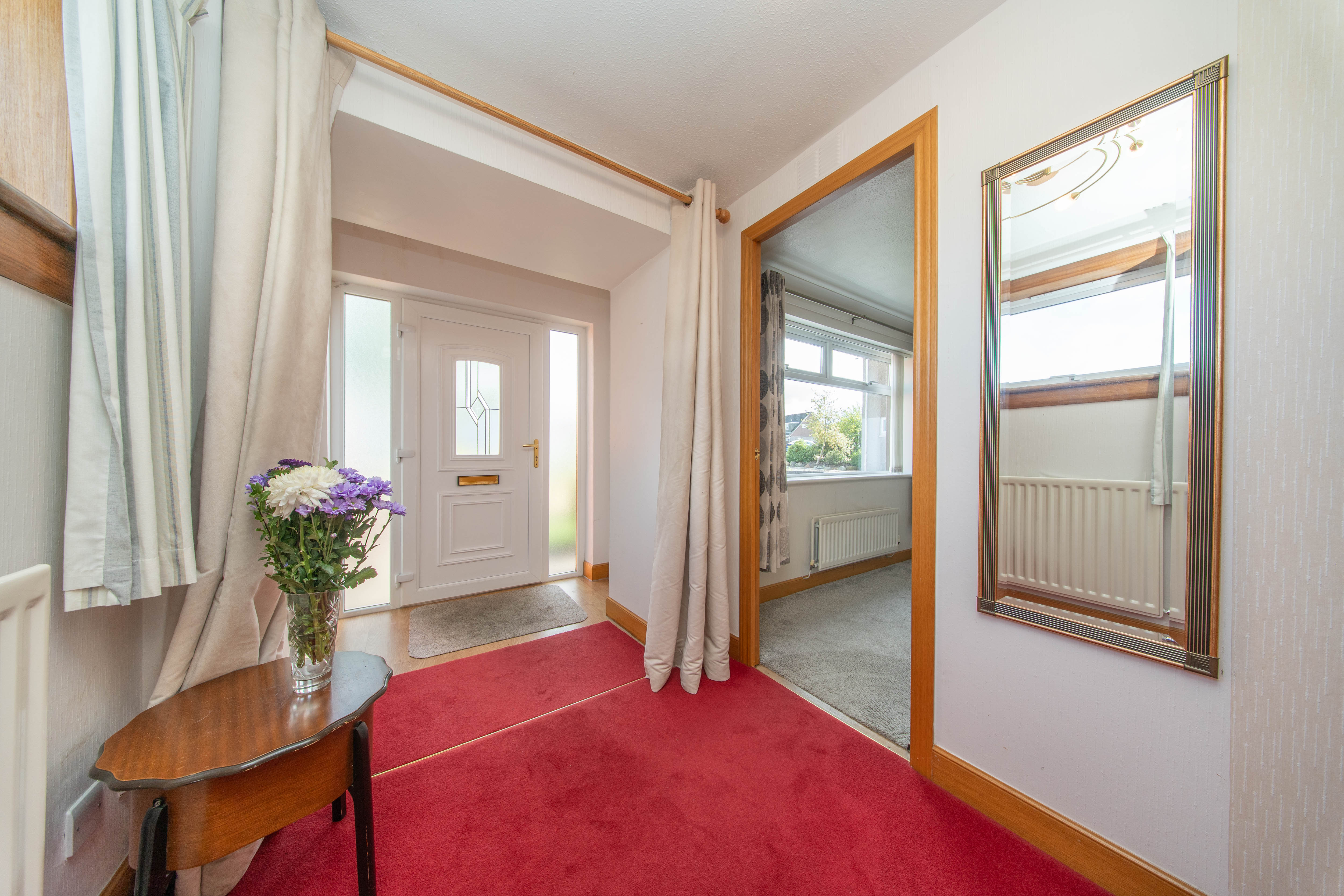 The welcoming approach to this property is created by a delightful garden which has a grassed area, an area laid with decorative stones and some planting of trees, shrubs and flowering plants. A mono blocked driveway for Several vehicles is located to the side.