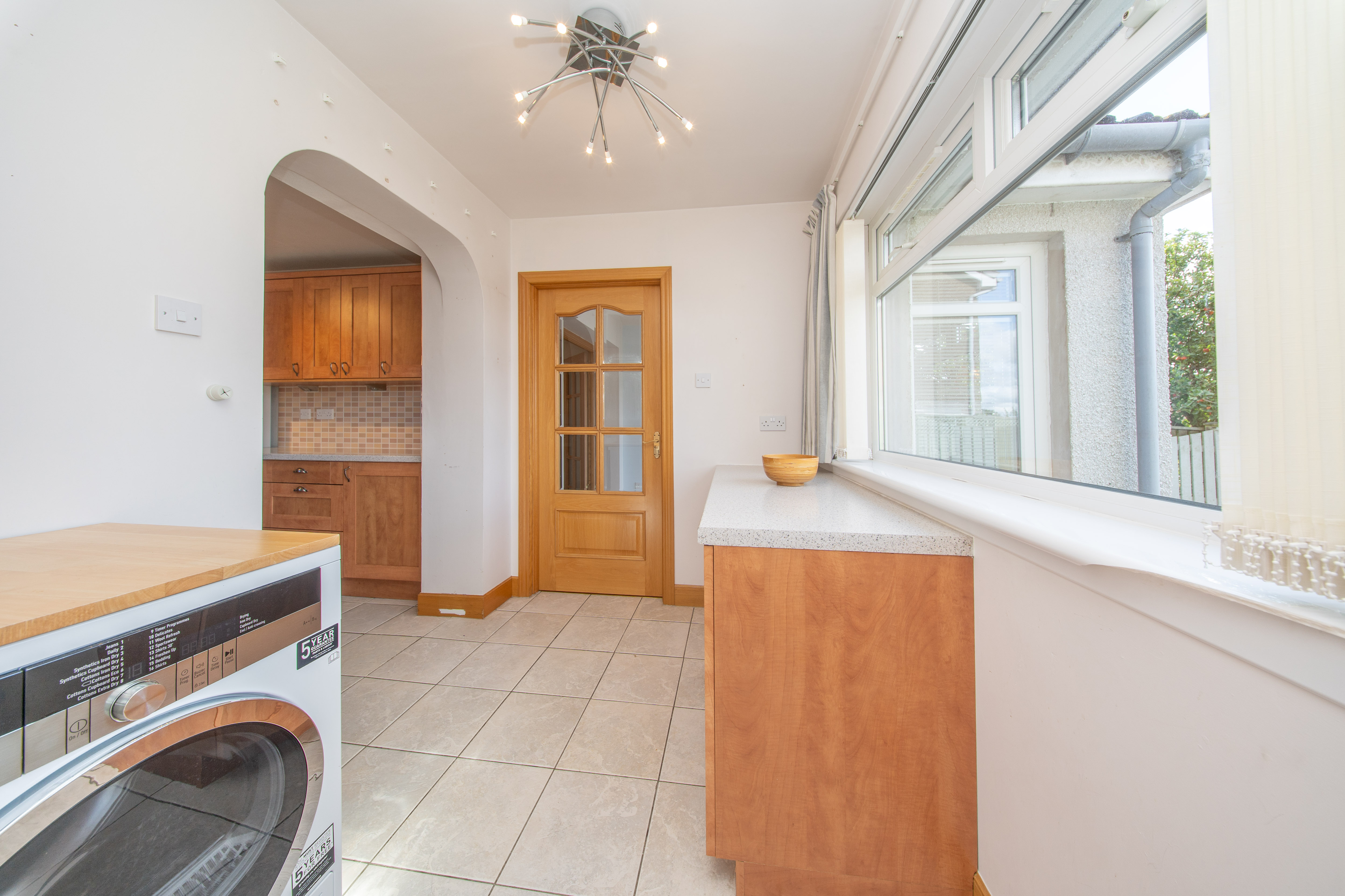 2.314m x 1.922m (07’07” x 06’03”) Open plan from the kitchen, this useful area could be used for a variety of uses. Decorated with tiled flooring and white painted walls. Fitted wooden units with worksurface provide further storage and there is space for a tumble dryer, which can be neogiated in the sale. Windows and a fully glazed glass door overlooking the rear of property make this room bright and airy. Ceiling lighting and power points are supplied.