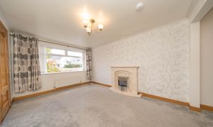 4.164m x 3.040m (13’07” x 09’11”) This generously sized room creates a homely feel with a grey carpet to the floor, one feature wall and neutrally painted to the remaining walls. The feature fireplace houses an electric fire with hearth, mantlepiece and surround. Large windows to the front allow in lots of natural light and is enhanced by the ceiling lighting. Power points, a radiator, a telephone socket, a television aerial socket and a smoke detector are provided.
