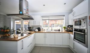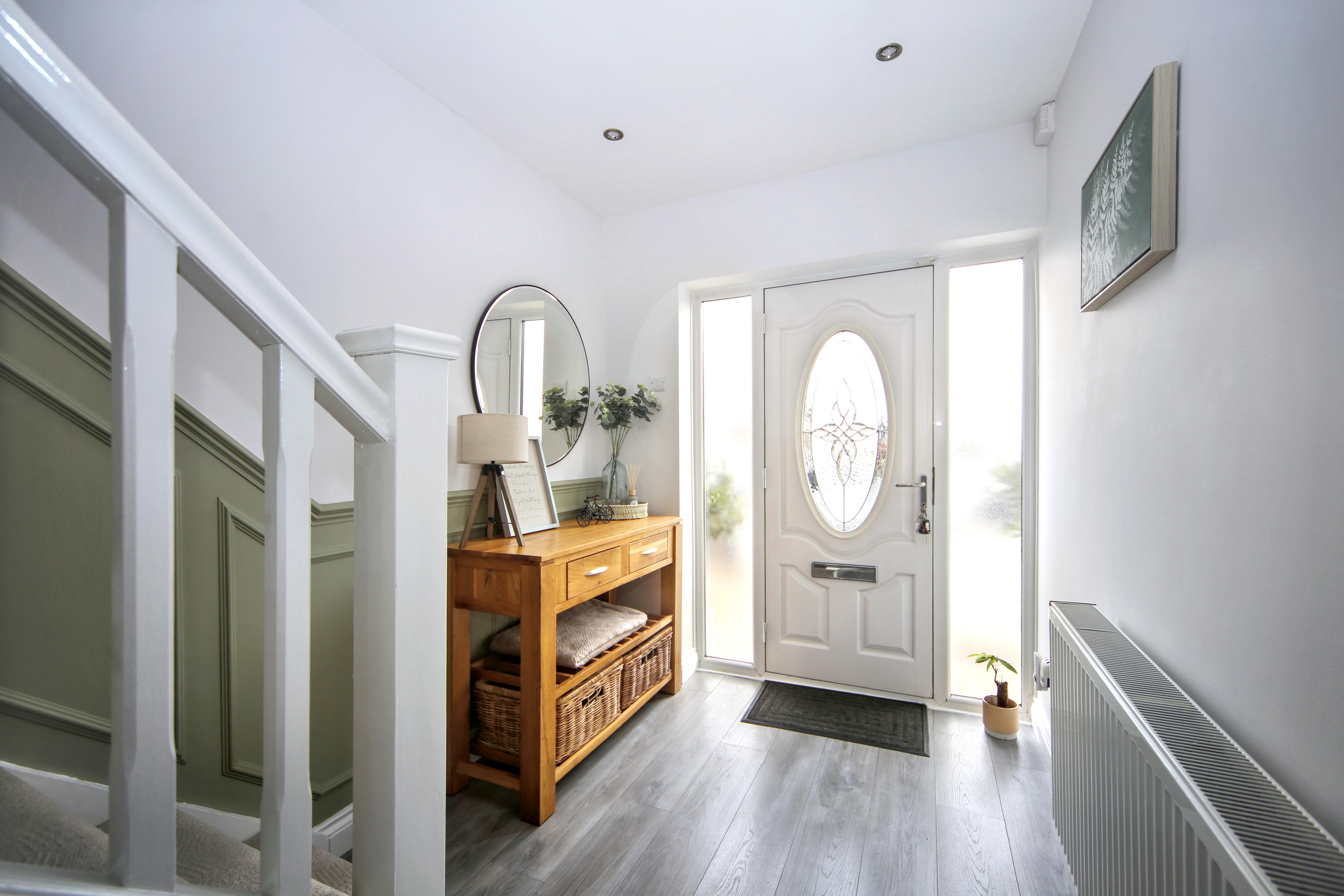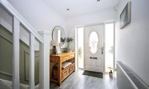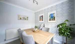 The property boasts a large driveway with space for up to four cars, leading to a welcoming entrance and spacious hallway complete with convenient under stairs storage. The bright and comfortable lounge features a charming bay window, creating a warm and inviting atmosphere.