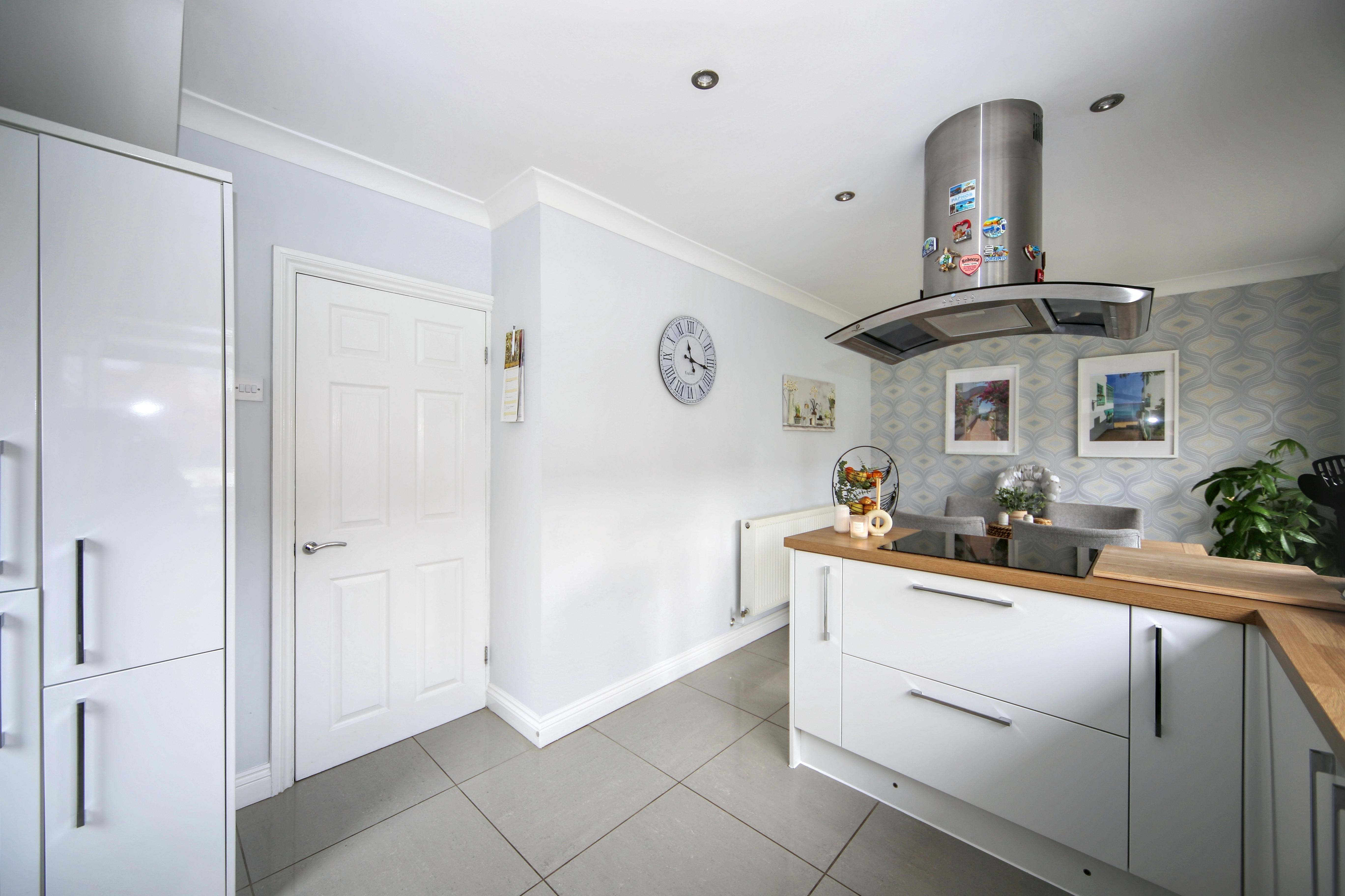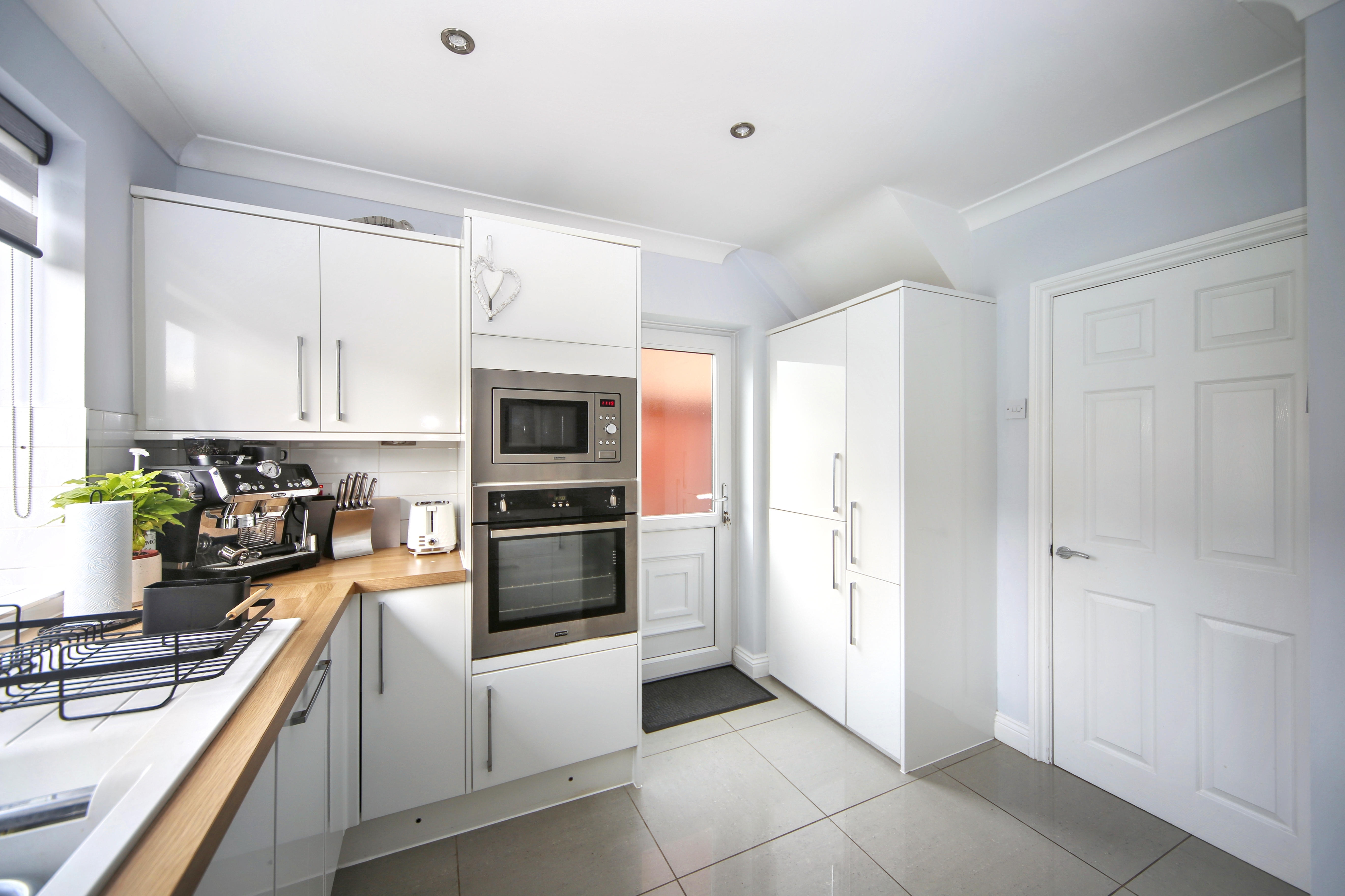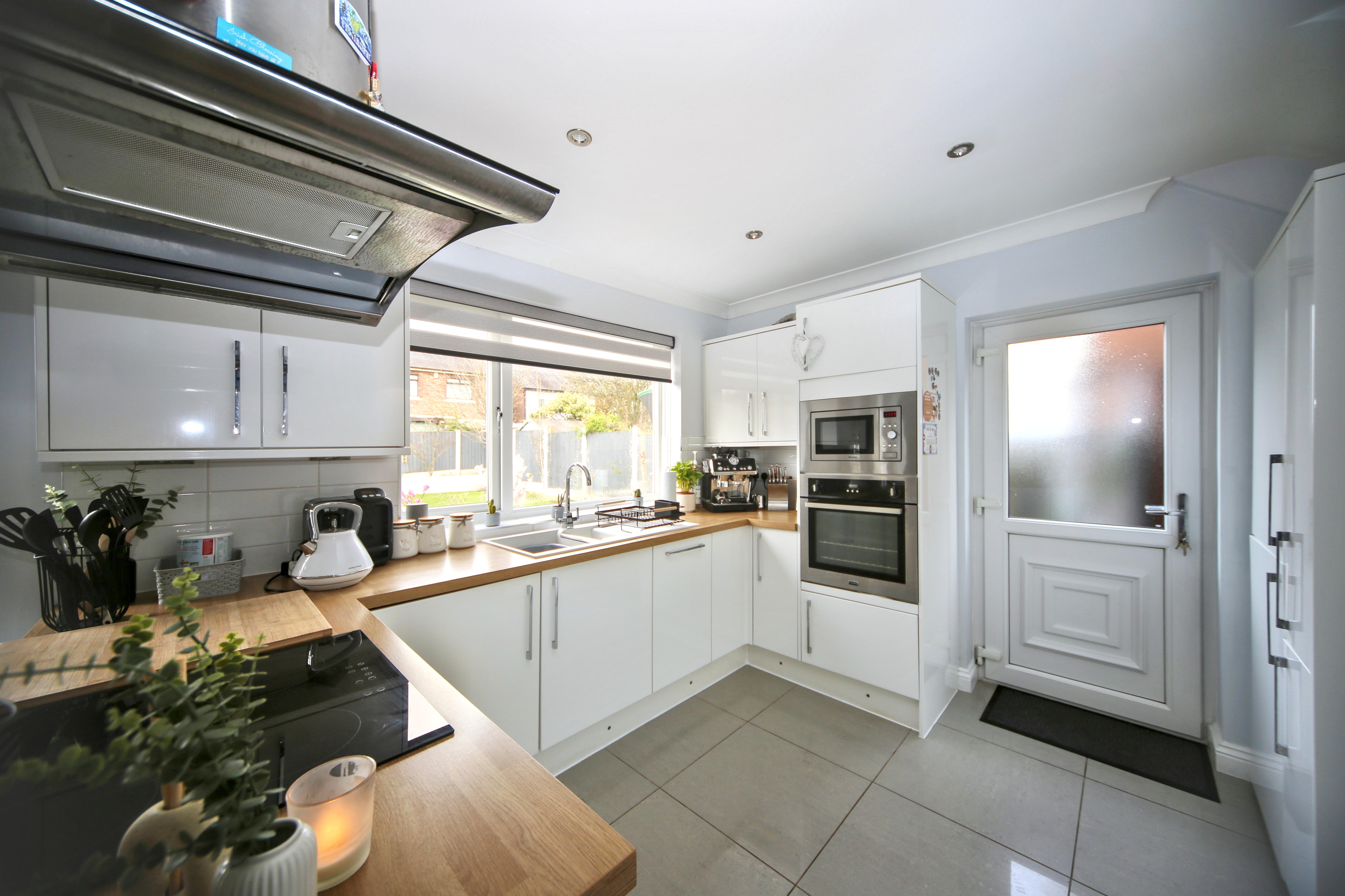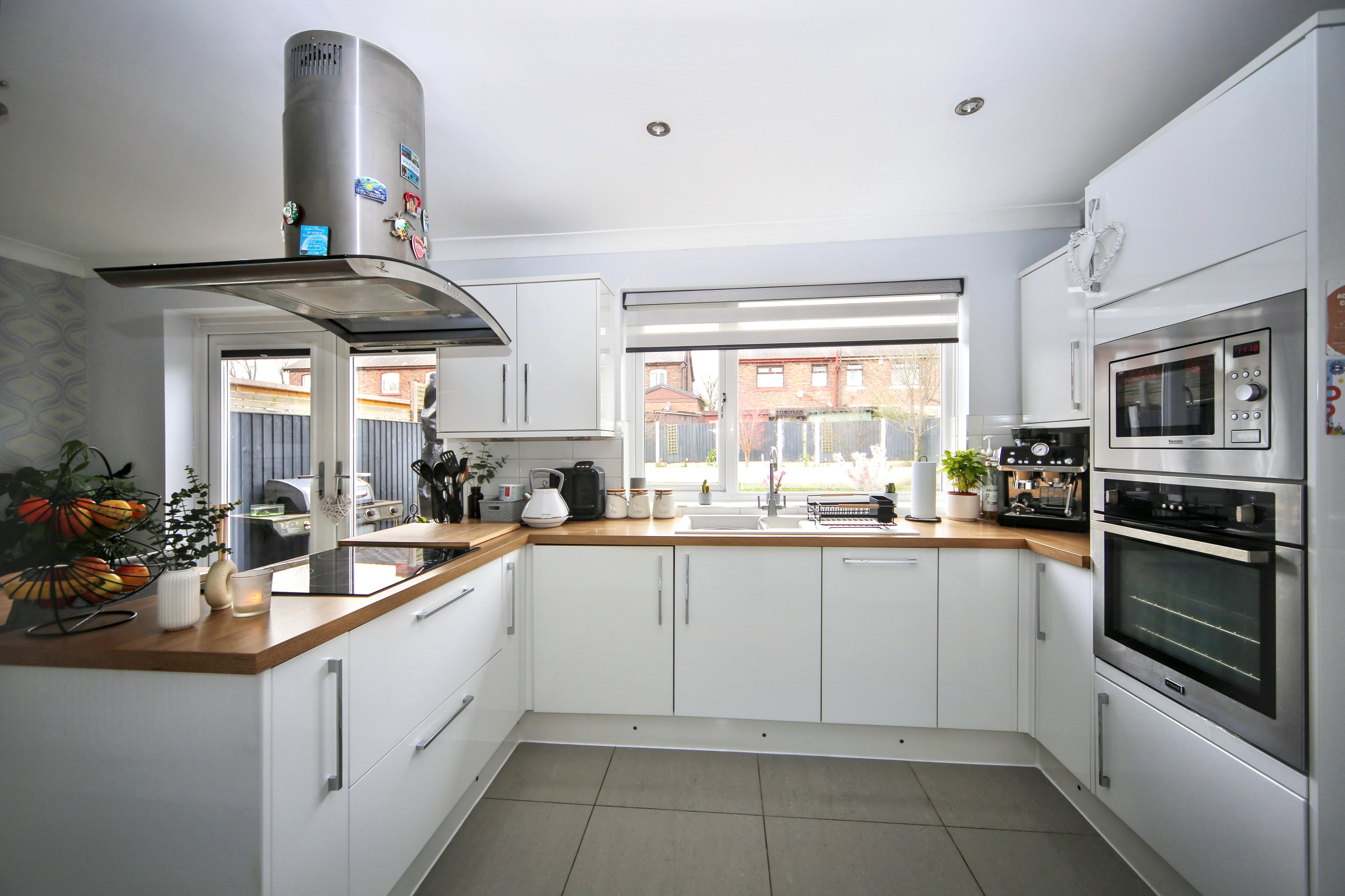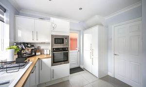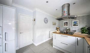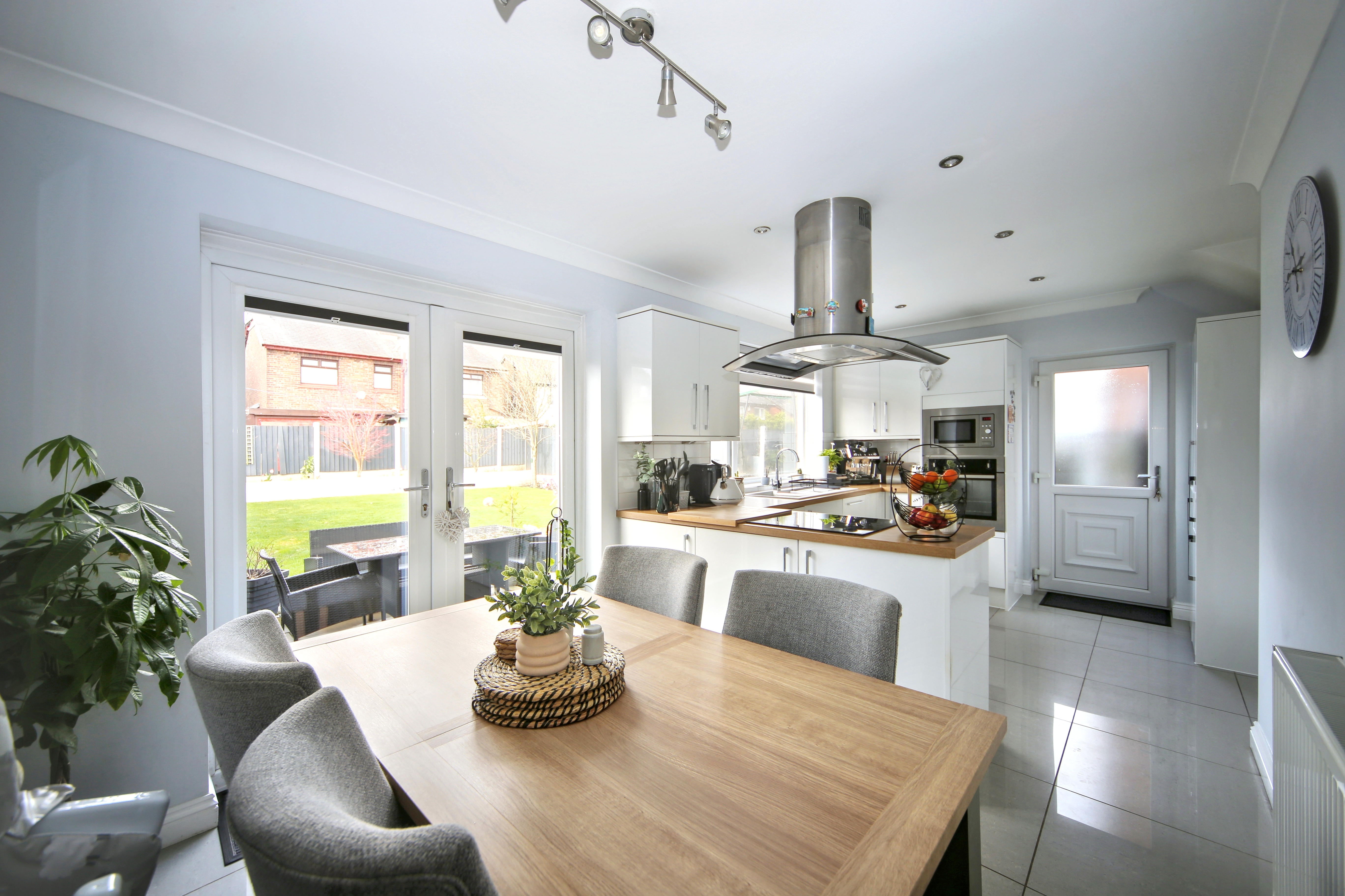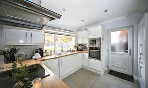 To the rear, the home opens into a stylish open plan kitchen and dining area, perfect for both everyday living and entertaining. The kitchen is fitted with a range of built in appliances, offering both practicality and a sleek finish.